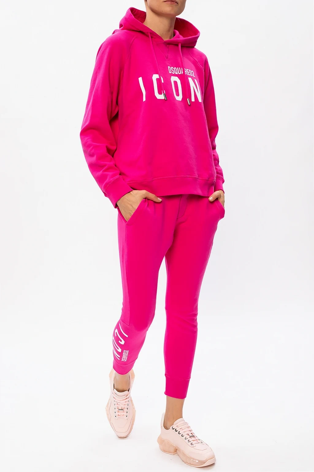 Pink sweatpants from Dsquared2. Cut from cotton jersey this pair comes with a drawstring waist, two side seam pockets, a white graphic print with the brand's logo and elasticated leg openings.
