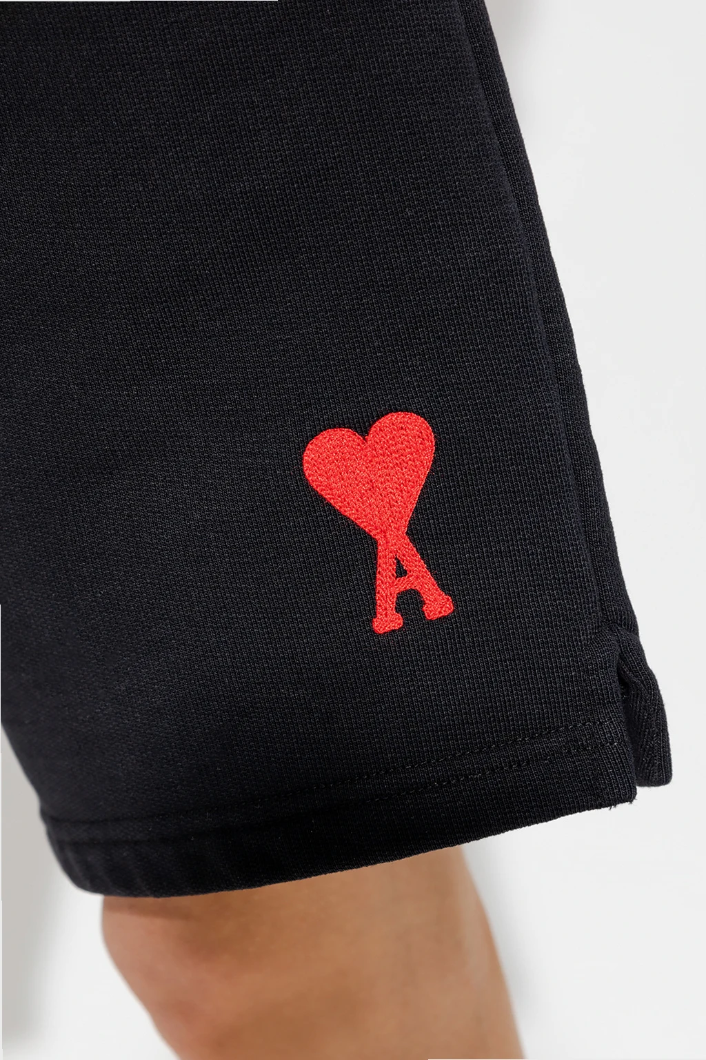 Black shorts from Ami Alexandre Mattiussi. Crafted from organic cotton, this pair showcases red Ami de Coeur embroidery on the front, a drawstring waistband and two slip pockets.