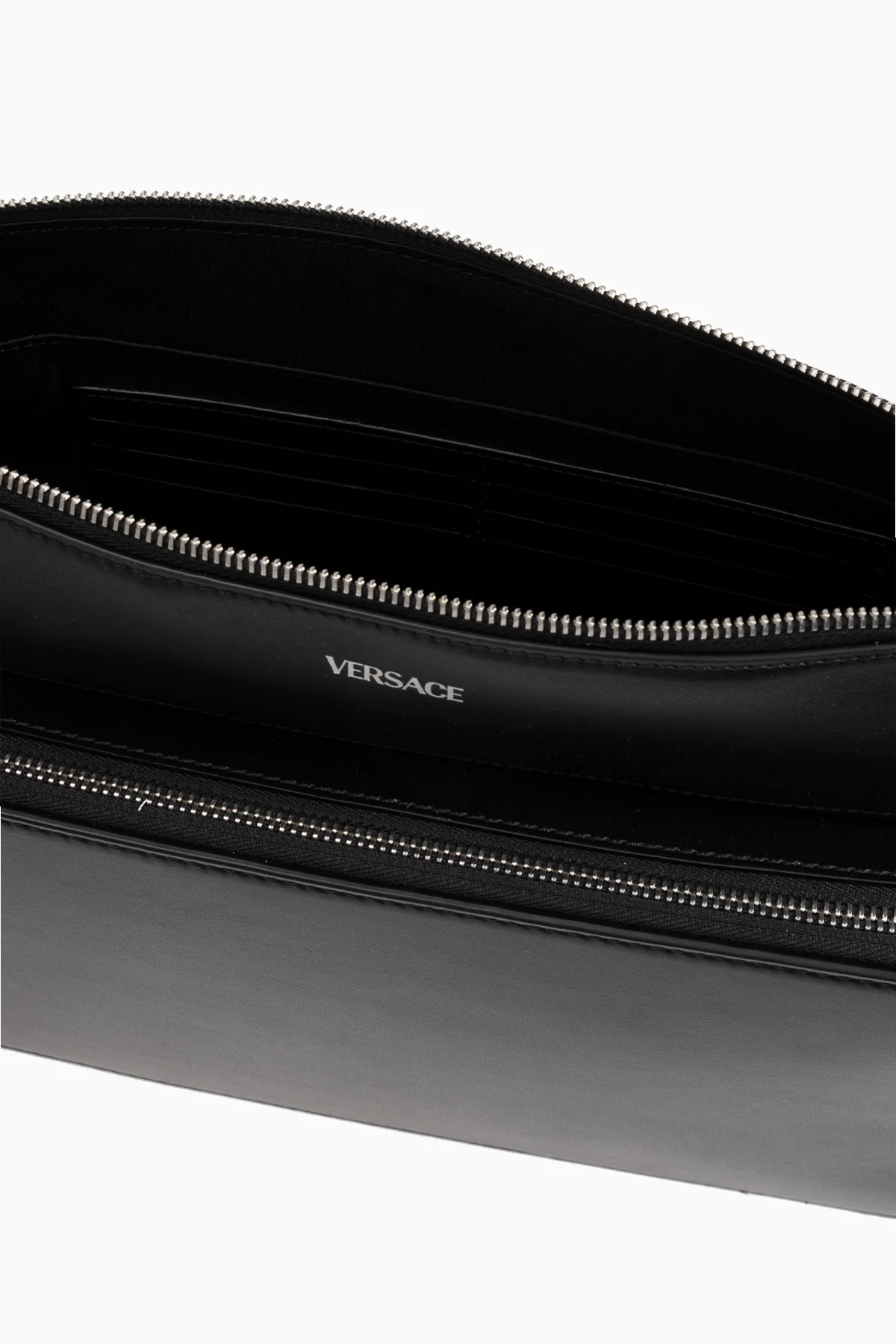 Details und Logo: Ein dezentes weißes Logo des Designers auf der Vorderseite der Tasche und der Schriftzug "VERSACE" im Inneren verleihen ihr Prestige und unterstreichen den exklusiven Charakter.