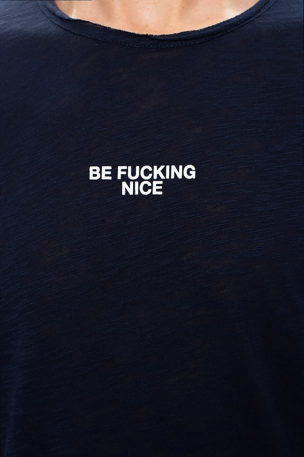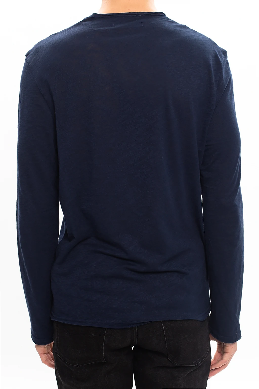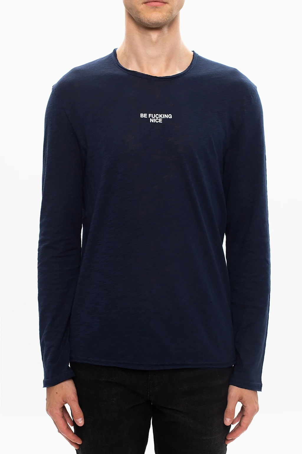 Navy crewneck T-shirt from Zadig & Voltaire. Crafted from cotton, this long sleeve design is distinguished by a white lettering print and a raw trim.