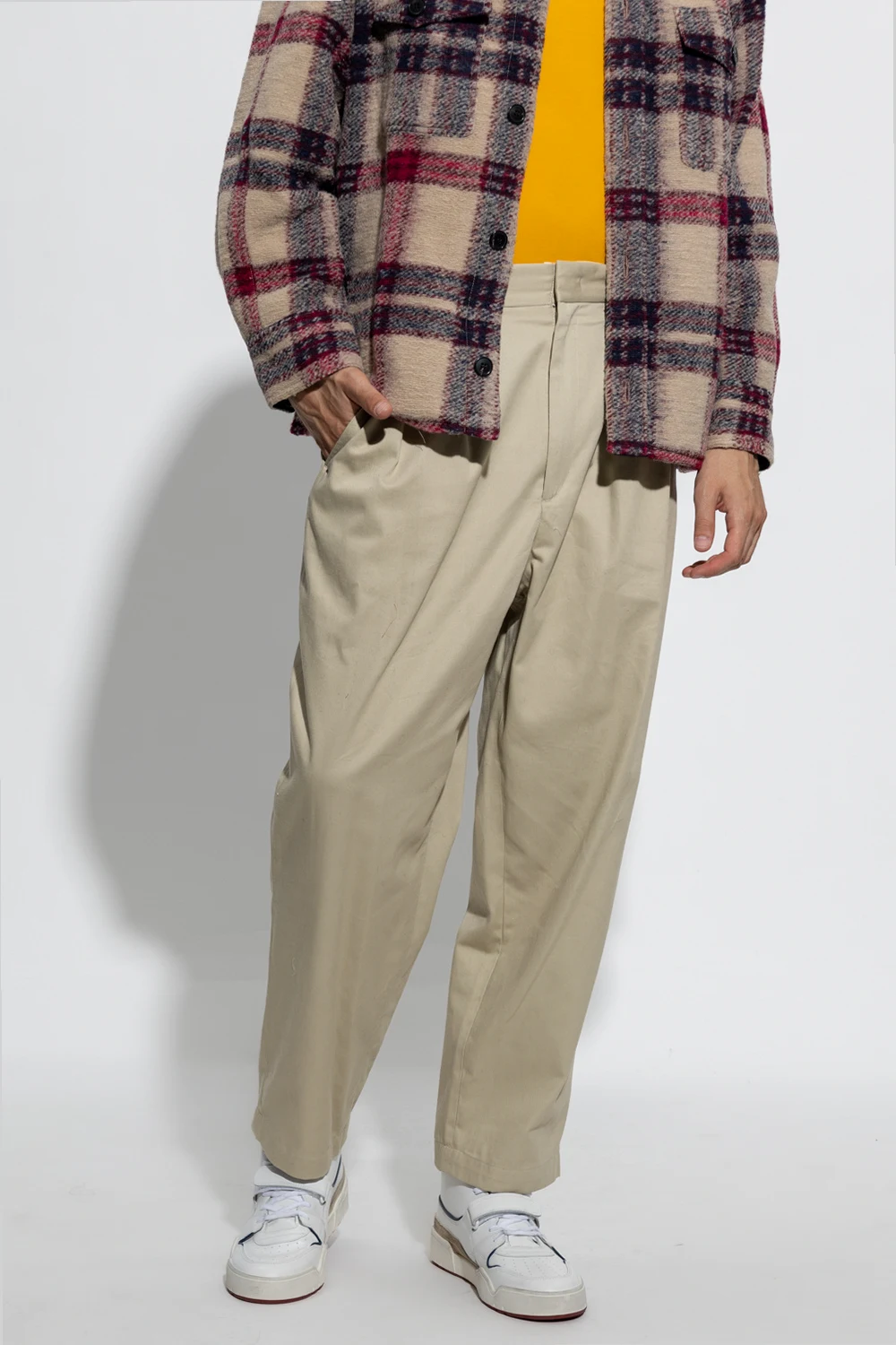 Beige ‘Niouflow’ trousers from Isabel Marant. Made of cotton, this pair features a hook, button and zip fastening, two front pockets, two buttoned back pockets and loose-fitting legs.