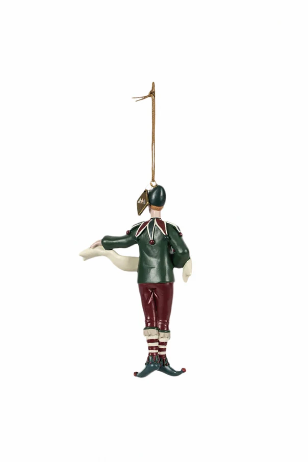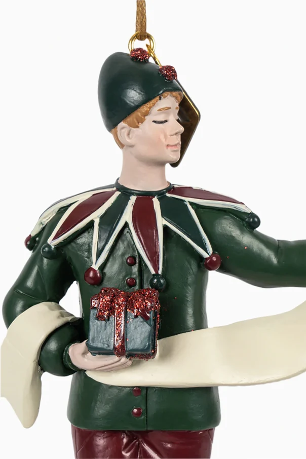 Die Weihnachtsdekoration von Konges Sløjd verkörpert künstlerische Raffinesse und festliche Tradition. Die schlanke Figur, die an einen Soldaten oder Elfen erinnert, verströmt dank sorgfältiger Handbemalung und perfekter Farbkombination einen außergewöhnlichen Charme. Das dominante Multicolor verbindet dezent eine dunkelgrüne Jacke mit hellbeigen, bordeauxroten und burgunderroten Akzenten, während die dreieckigen Krägen mit Kugeln sowie die gestreiften Socken die Einzigartigkeit des Produkts betonen.