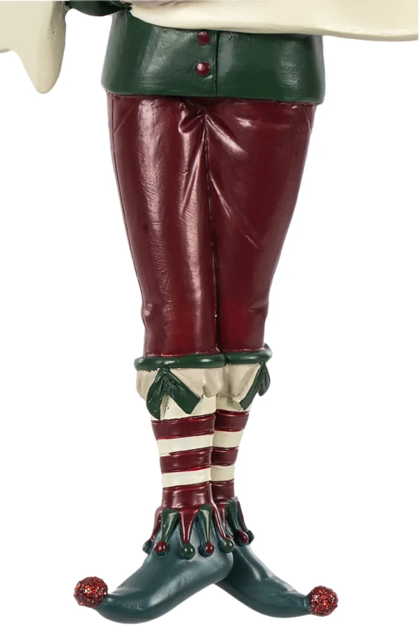 Das gesamte Stück ist aus hochwertigem Kunststoff gefertigt, was für Langlebigkeit und eine exzellente Nachbildung der Details sorgt – vom glitzernden Geschenkbox-Accessoire bis hin zum sorgfältig modellierten Gesicht und den ausdrucksstarken Haaren. Die handbemalten Details verleihen jedem Dekorationsstück einen individuellen Charakter und machen es zu einer einzigartigen Ergänzung für jedes festliche Interieur.