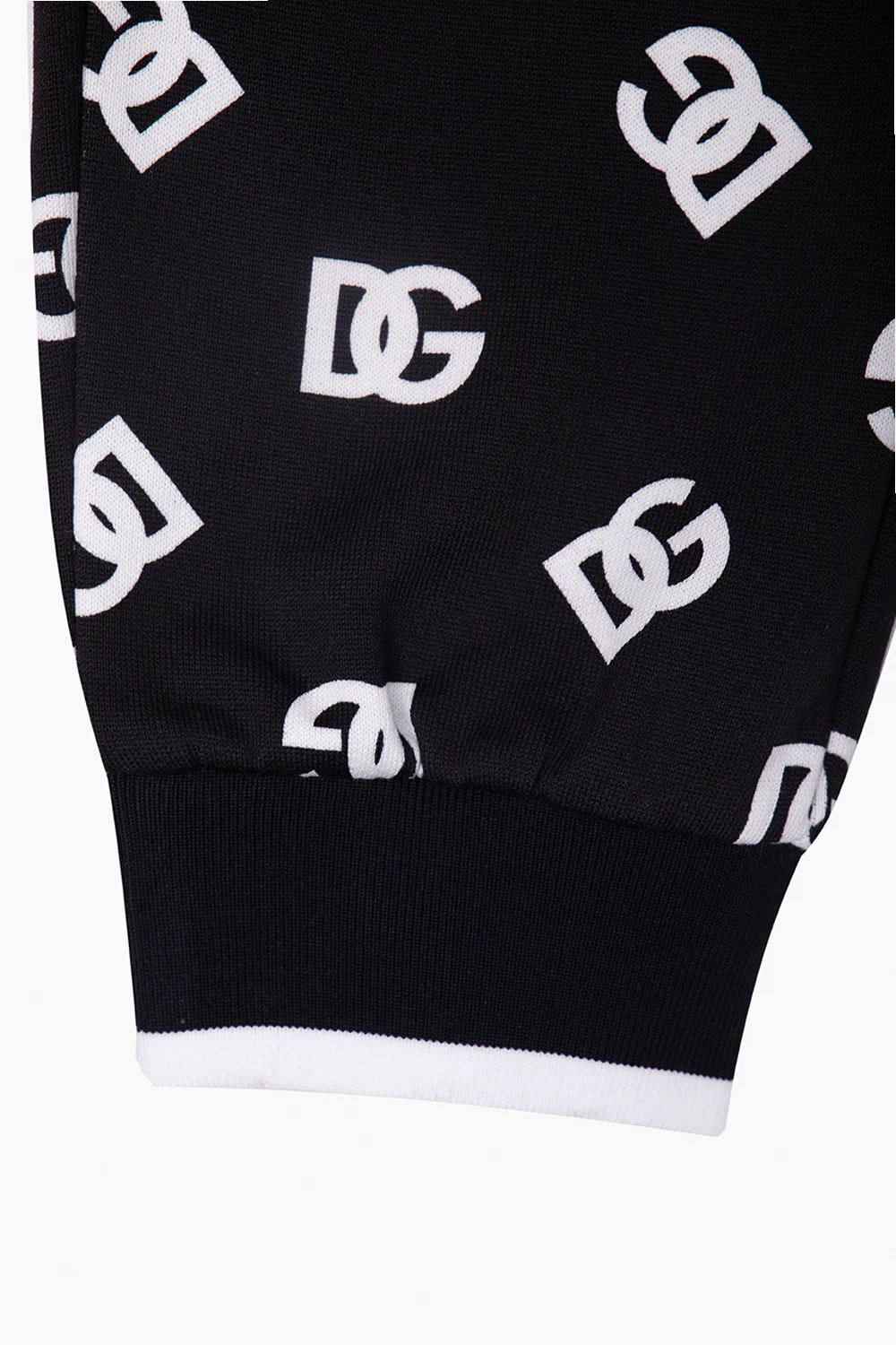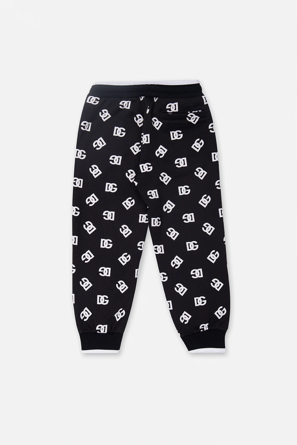 Black sweatpants from Dolce & Gabbana Kids. Made of cotton, and decorated with a white monogram pattern, this pair features a drawstring waistband, elasticated cuffs and three slip pockets.