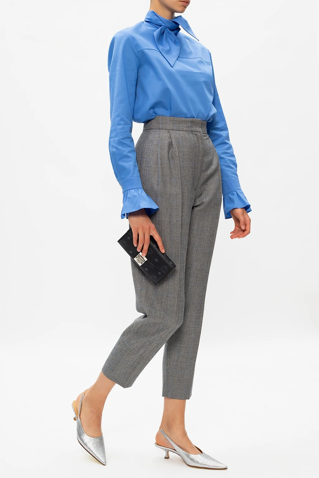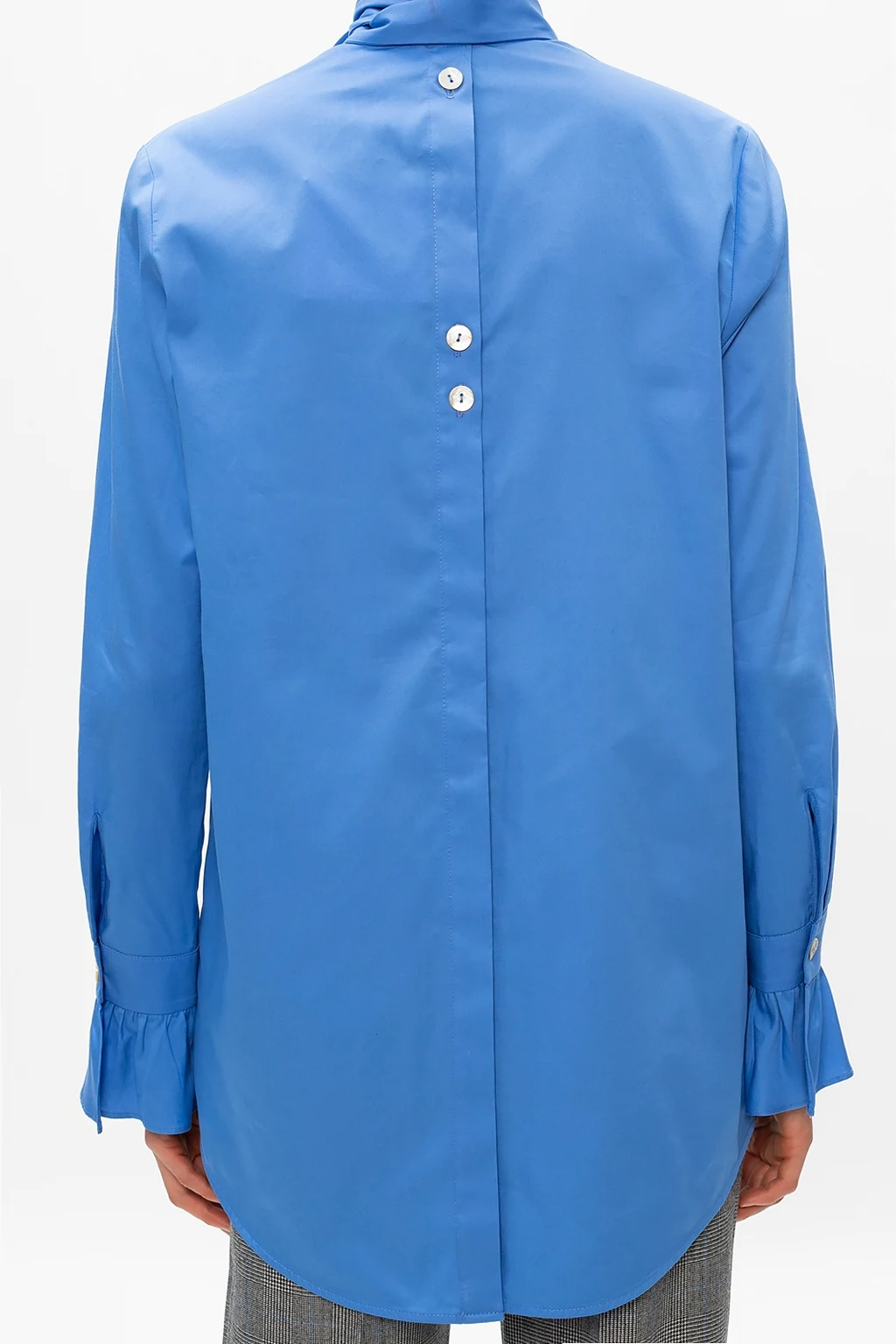 Blue shirt from Victoria Beckham. Crafted from organic cotton, this classic design is enriched with a bow neck detail, pearl buttons and ruffle cuffs.