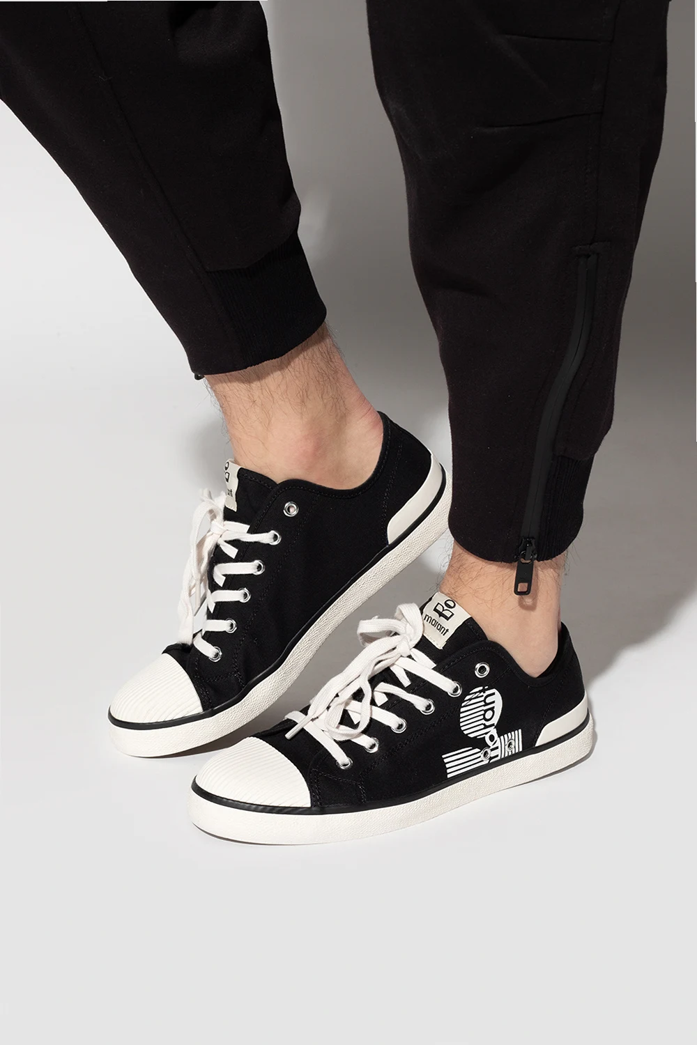 Black ‘Binkooh’ sneakers from Isabel Marant. Crafted from cotton, this lace-up pair sits on a white and brown rubber sole and features a tongue logo patch and a white ribbed rubber toe cap.