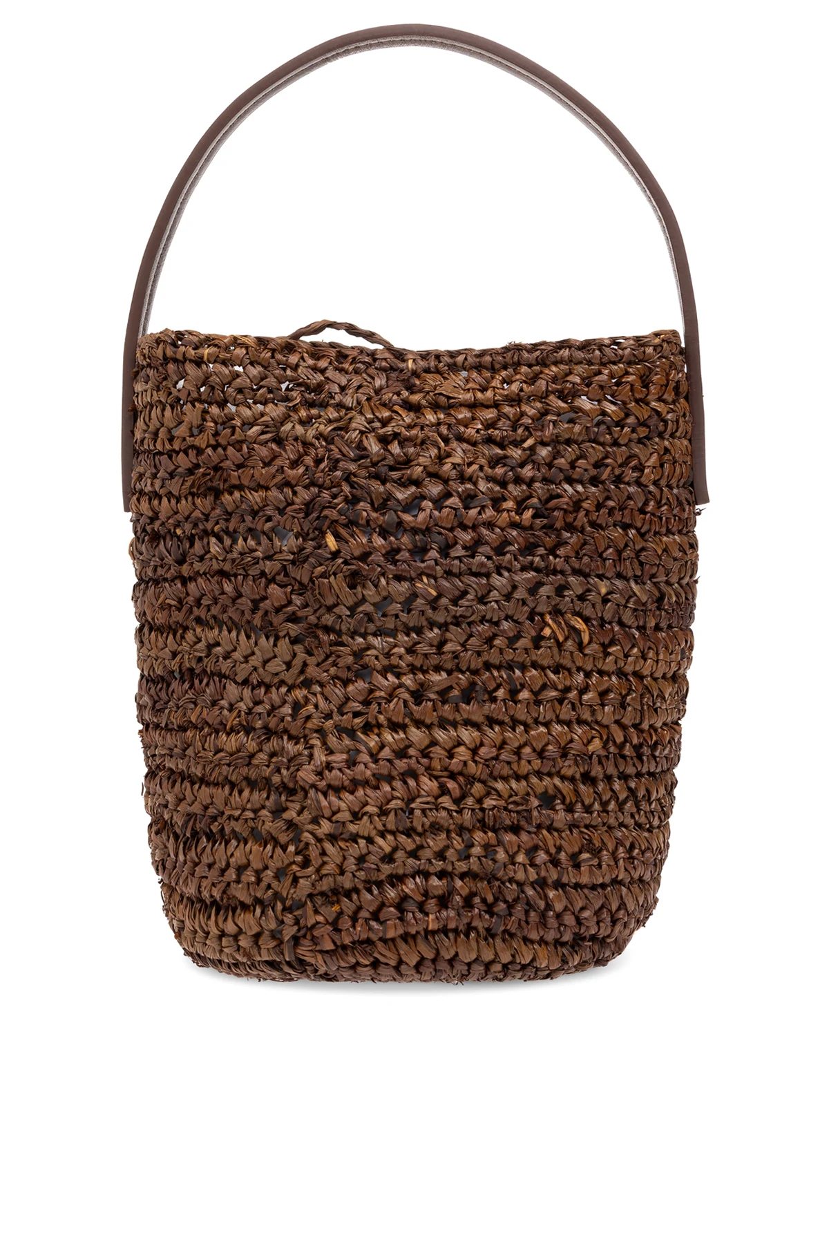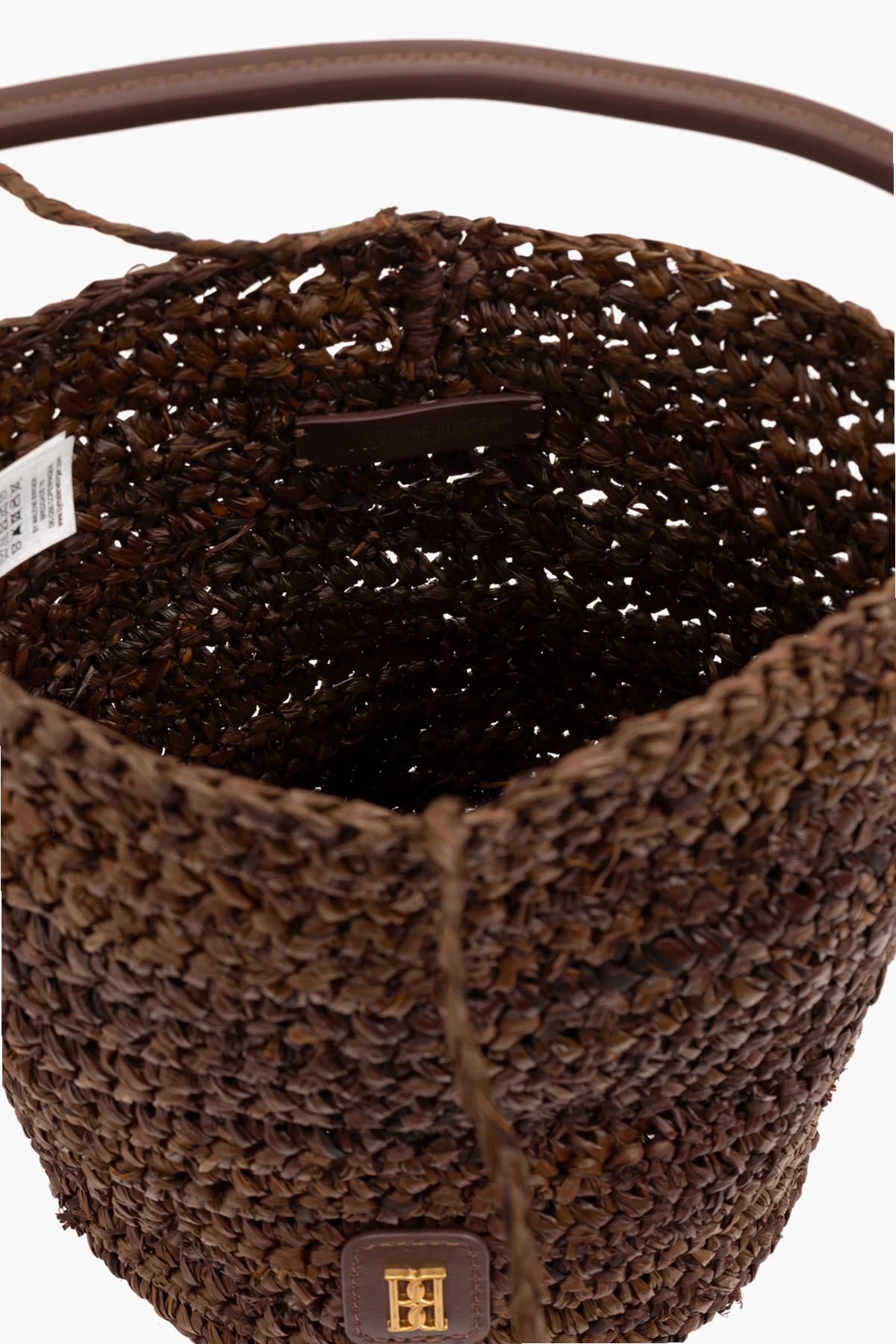 Aus 100% Stroh gefertigt, zieht die Tasche mit ihrer einzigartigen Flechttextur die Aufmerksamkeit auf sich, die nicht nur die Langlebigkeit und Robustheit des Produkts erhöht, sondern ihm auch Charakter verleiht. Die rechteckige Form mit sanft gerundeten Kanten und die vertikale Ausrichtung der Tasche, kombiniert mit einem langen, flachen Schulterriemen, bieten nicht nur Komfort, sondern auch Eleganz. Auf der Vorderseite der Tasche betont das goldene Logo der Designerin subtil, aber deutlich den Luxus.