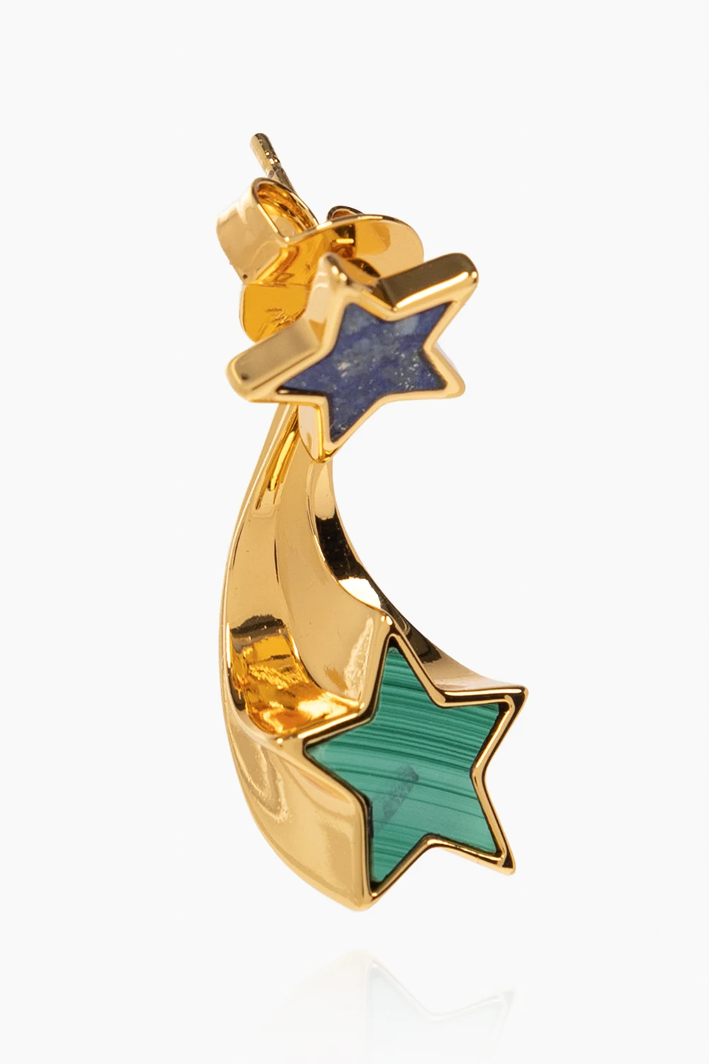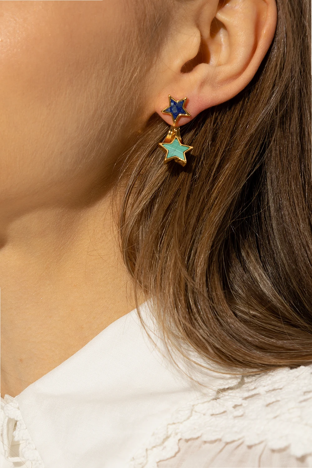 Gold-plated star earrings from Zimmermann. Made of brass plated with 20k gold, this push back pair is embellished with lapis and malachite.