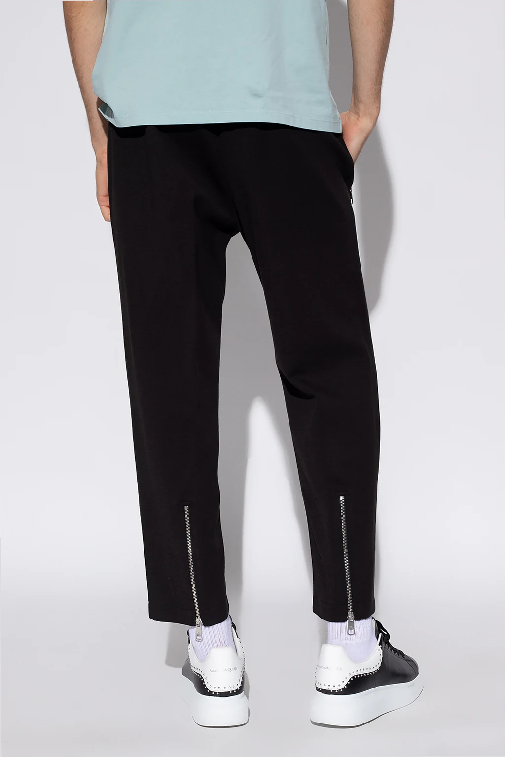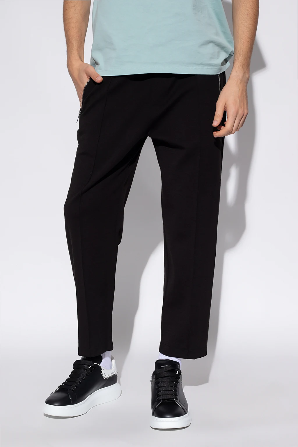 Black sweatpants from Neil Barrett. Enriched by stitching details on the front, this pair features an elasticated waistband with a drawstring fastening, three zipped pockets and zipped cuffs.