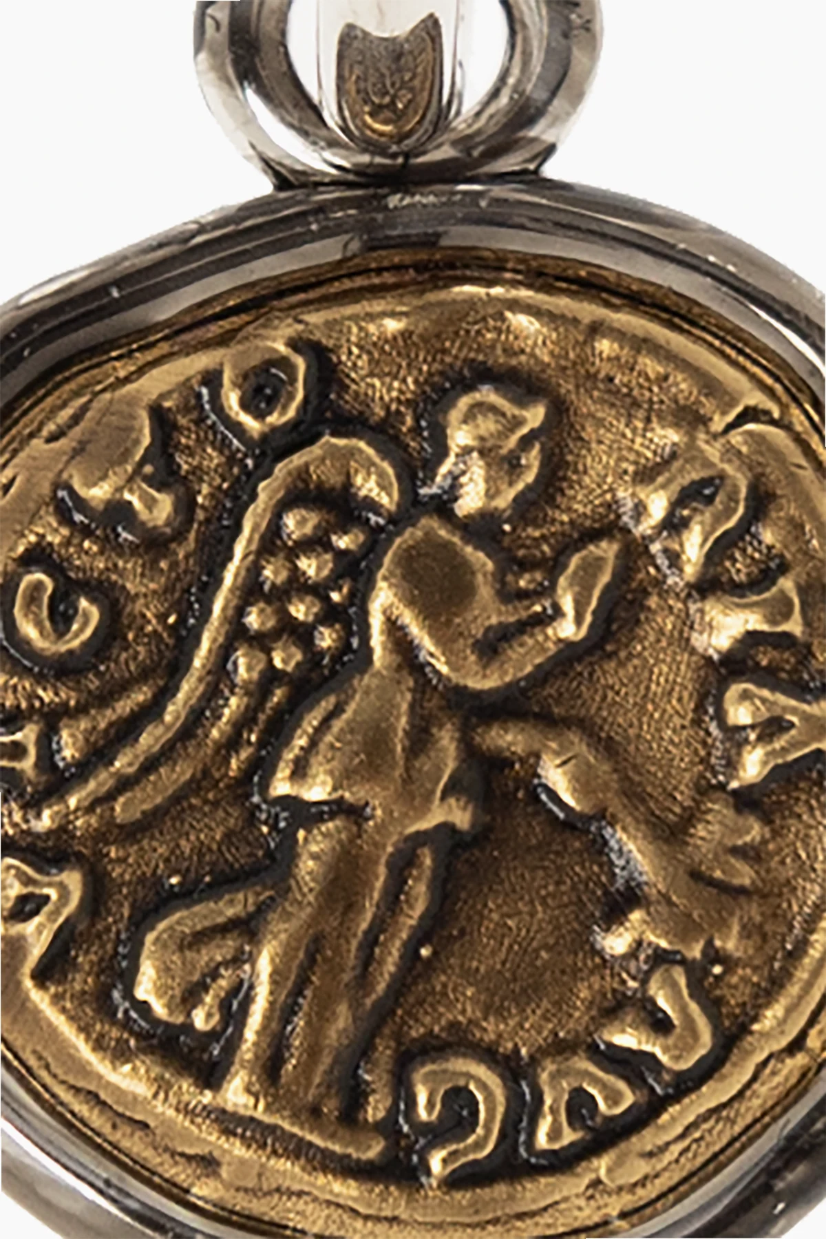 Gold-tone and silver-tone earring from Dolce & Gabbana. Made of brass, this item features an engraved logo.