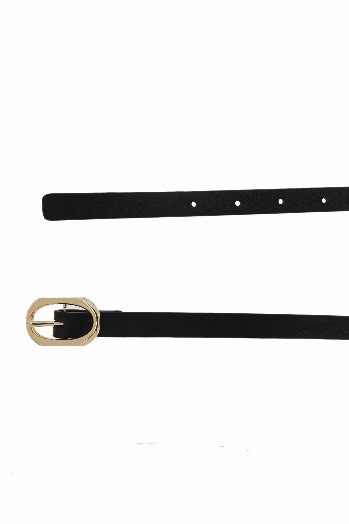 Er zeichnet sich durch eine goldene, ovale Schnalle aus, die ihm Eleganz verleiht und einen effektvollen Kontrast zum tiefen Schwarz bildet. Der Gürtel verfügt über mehrere Löcher, die eine einfache Längenanpassung ermöglichen, um sich den individuellen Bedürfnissen anzupassen.
