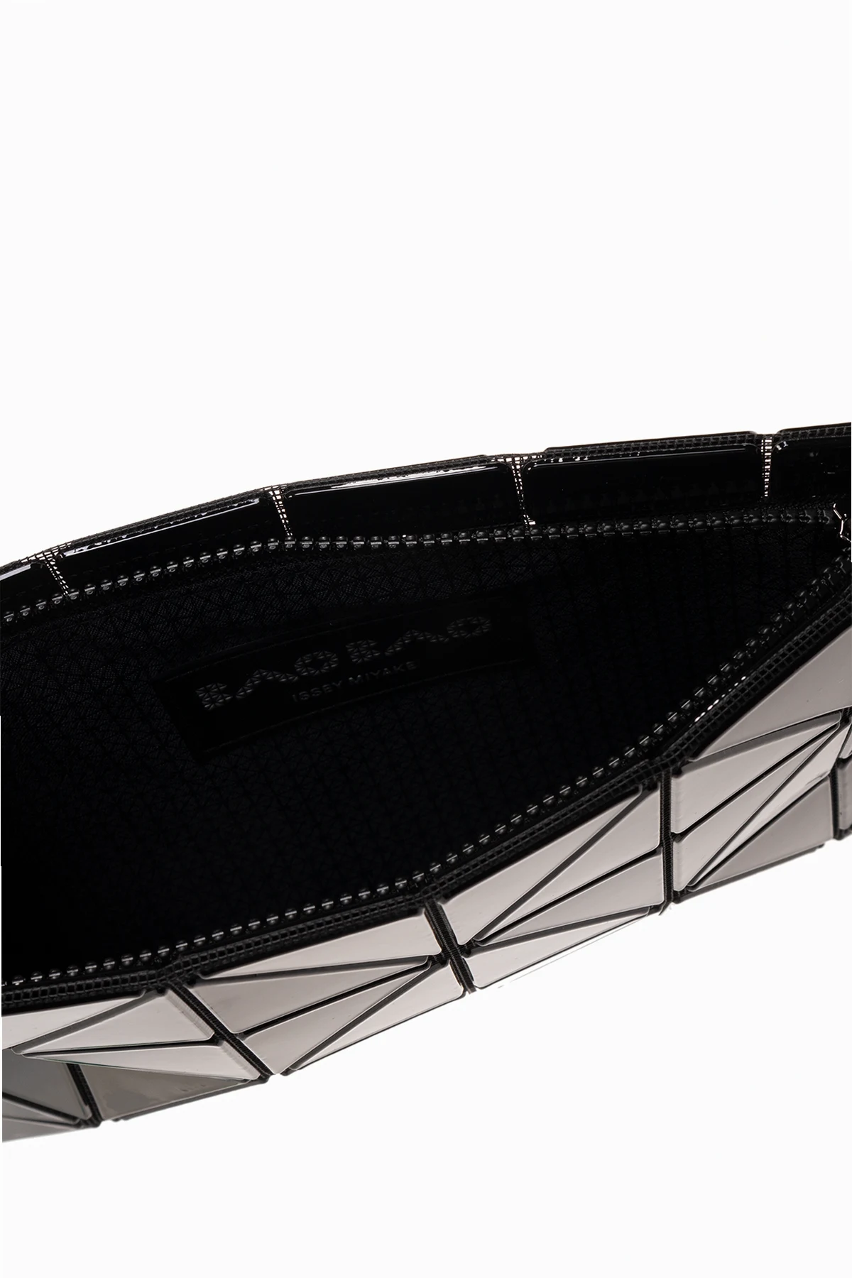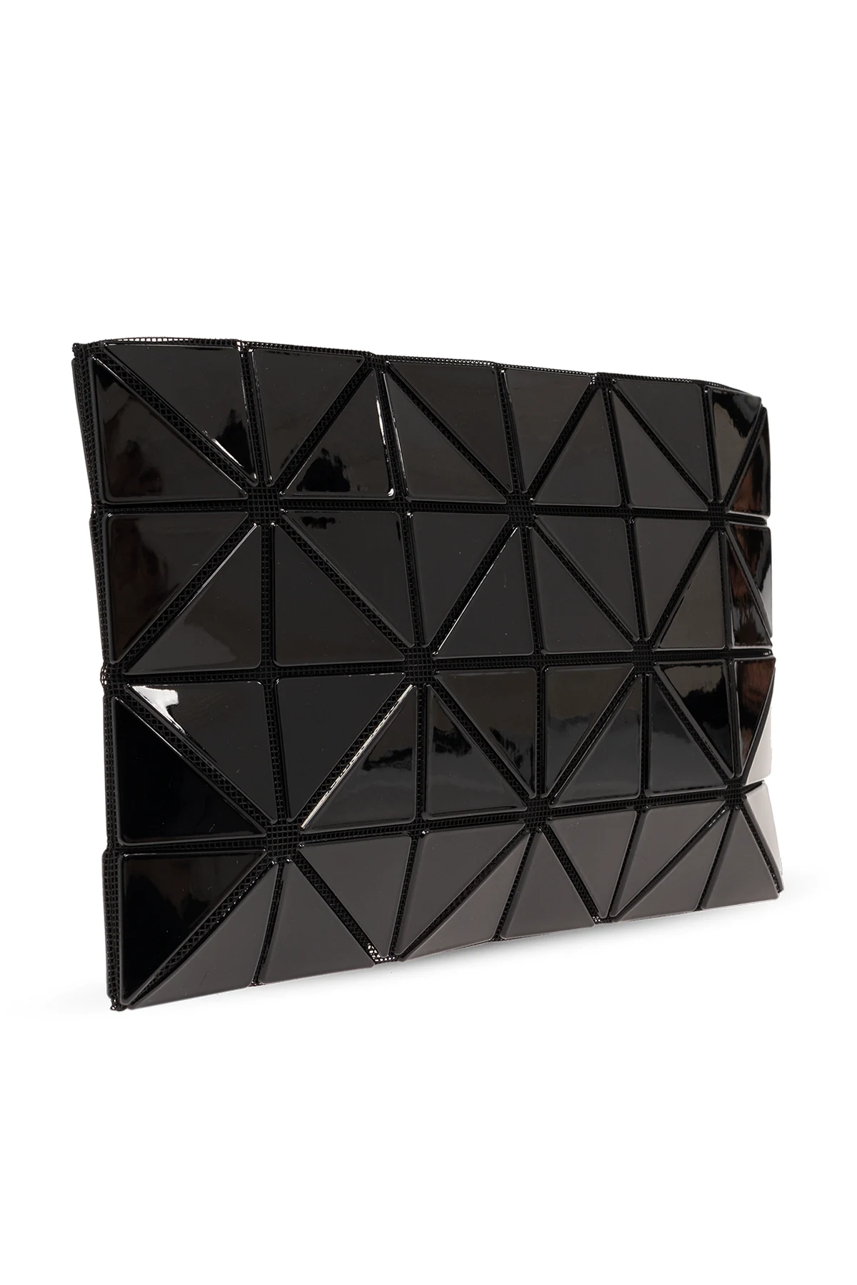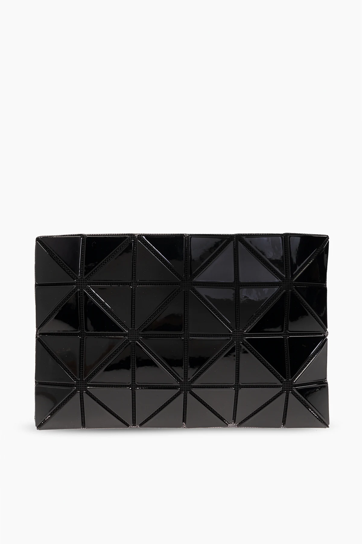 Black clutch from Bao Bao Issey Miyake. This item fastens via a zip and showcases an embossed logo and geometrical pattern. It is complete with one internal compartment.