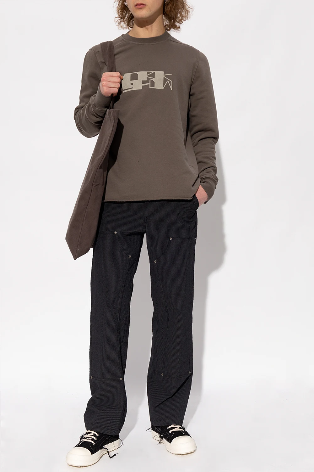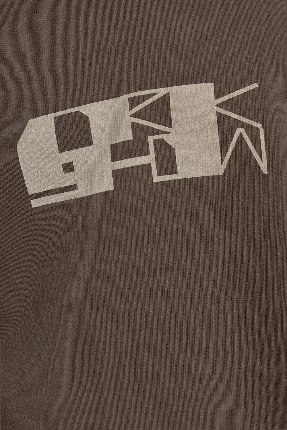 Brown crewneck sweatshirt from Rick Owens DRKSHDW. Made of cotton, this design features a cream print, ribbed trims at the neck and cuffs, raw-trimmed hem and the brand’s signature strap with a logo.