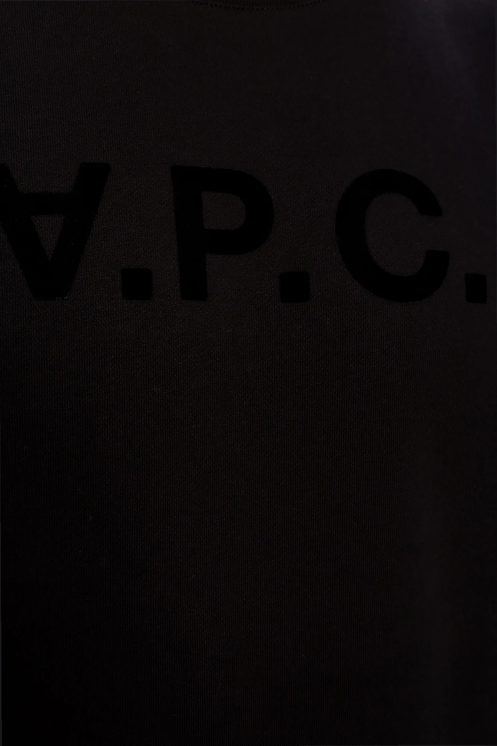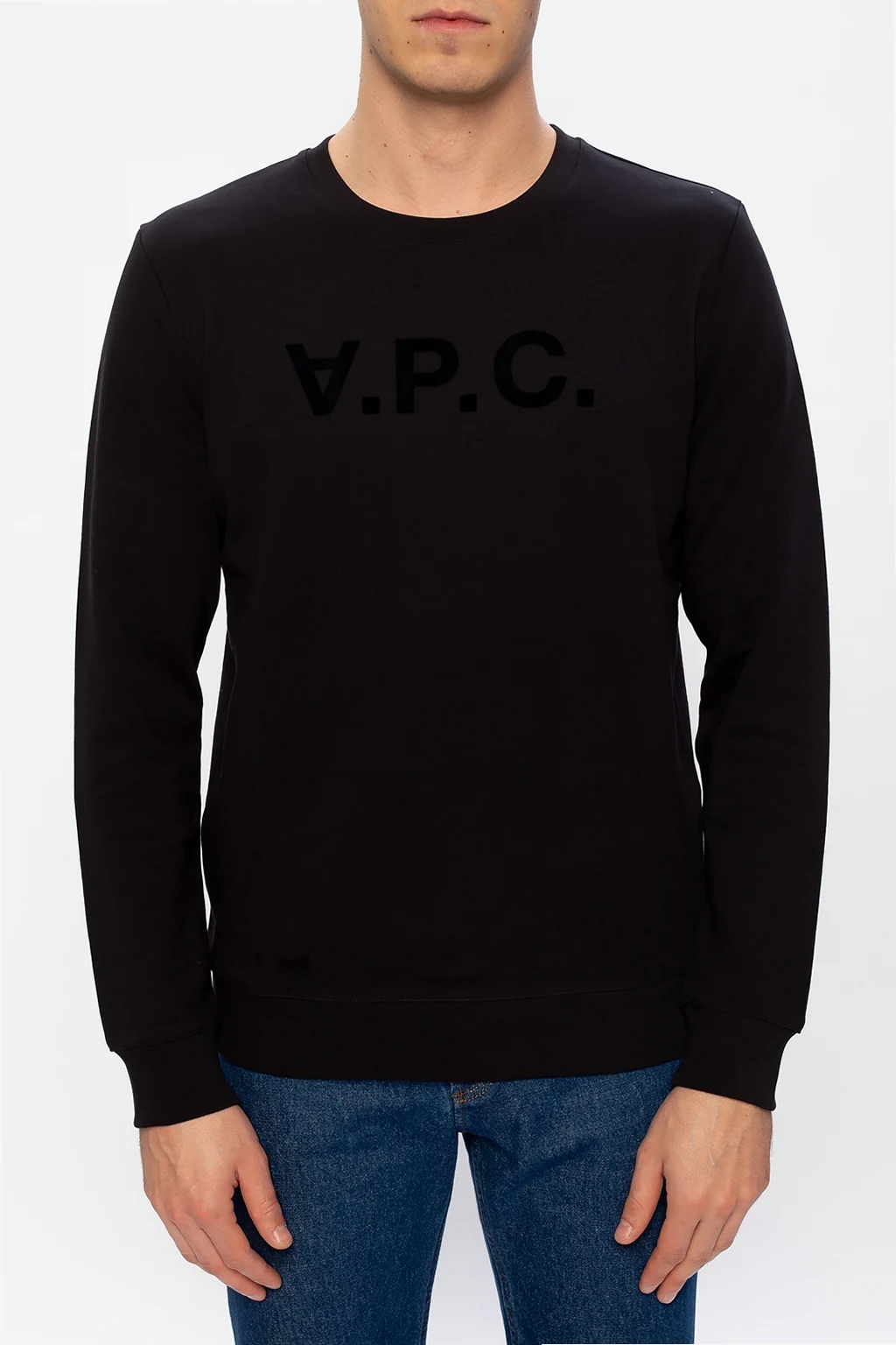 Black crewneck sweatshirt from A.P.C. Cut from cotton jersey, this premium quality item comes styled with black velvet-flocked logo detail on the chest and a ribbed bottom hem and cuffs.