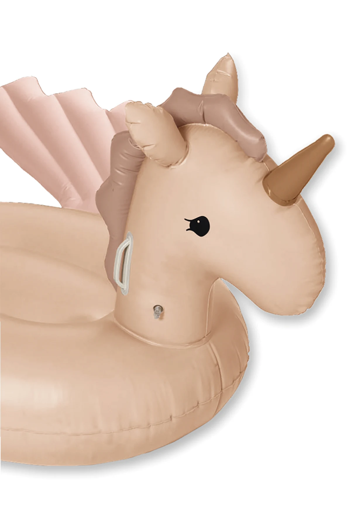 Wir präsentieren den bezaubernden aufblasbaren Einhorn-Schwimmring von Konges Sløjd , ein Meisterwerk des Designs, das Kinder in eine magische Welt des Wasserspiels entführt. Seine außergewöhnliche Konstruktion, inspiriert von majestätischen Einhörnern, ist ausgestattet mit Elementen wie einem deutlich konturierten Kopf, Ohren, dem charakteristischen Horn sowie Flügeln und einem durchdacht gestalteten Sitzbereich, der Komfort und Sicherheit gewährleistet.