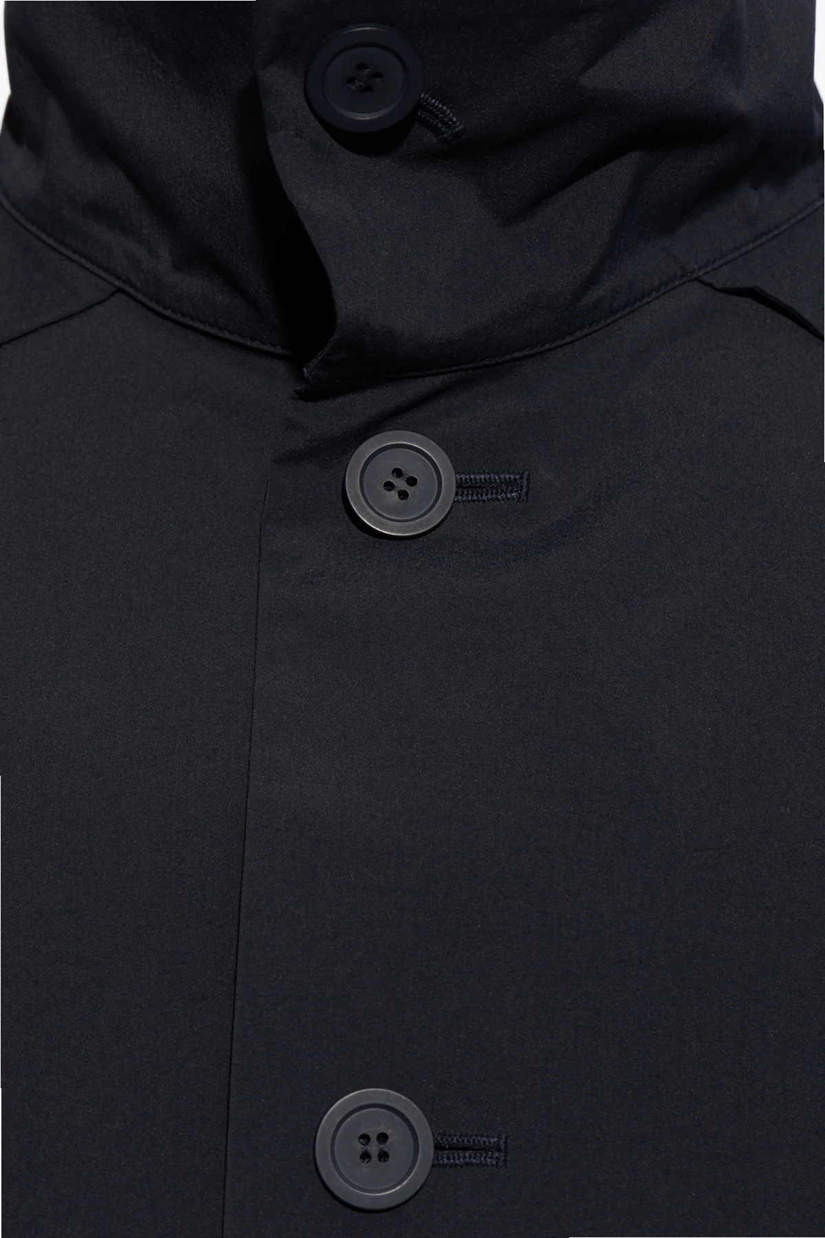 Gefertigt aus glatter, hochwertiger Polyesterfaser , besticht dieser Mantel durch einen subtilen Glanz, der in Kombination mit dem Stehkragen Eleganz verleiht und vor Kälte schützt. Die Verschlussleiste mit passenden Knöpfen sowie die traditionelle Ärmelkonstruktion mit geknöpften Manschetten unterstreichen die Liebe zum Detail, die ein Markenzeichen der Marke ist.