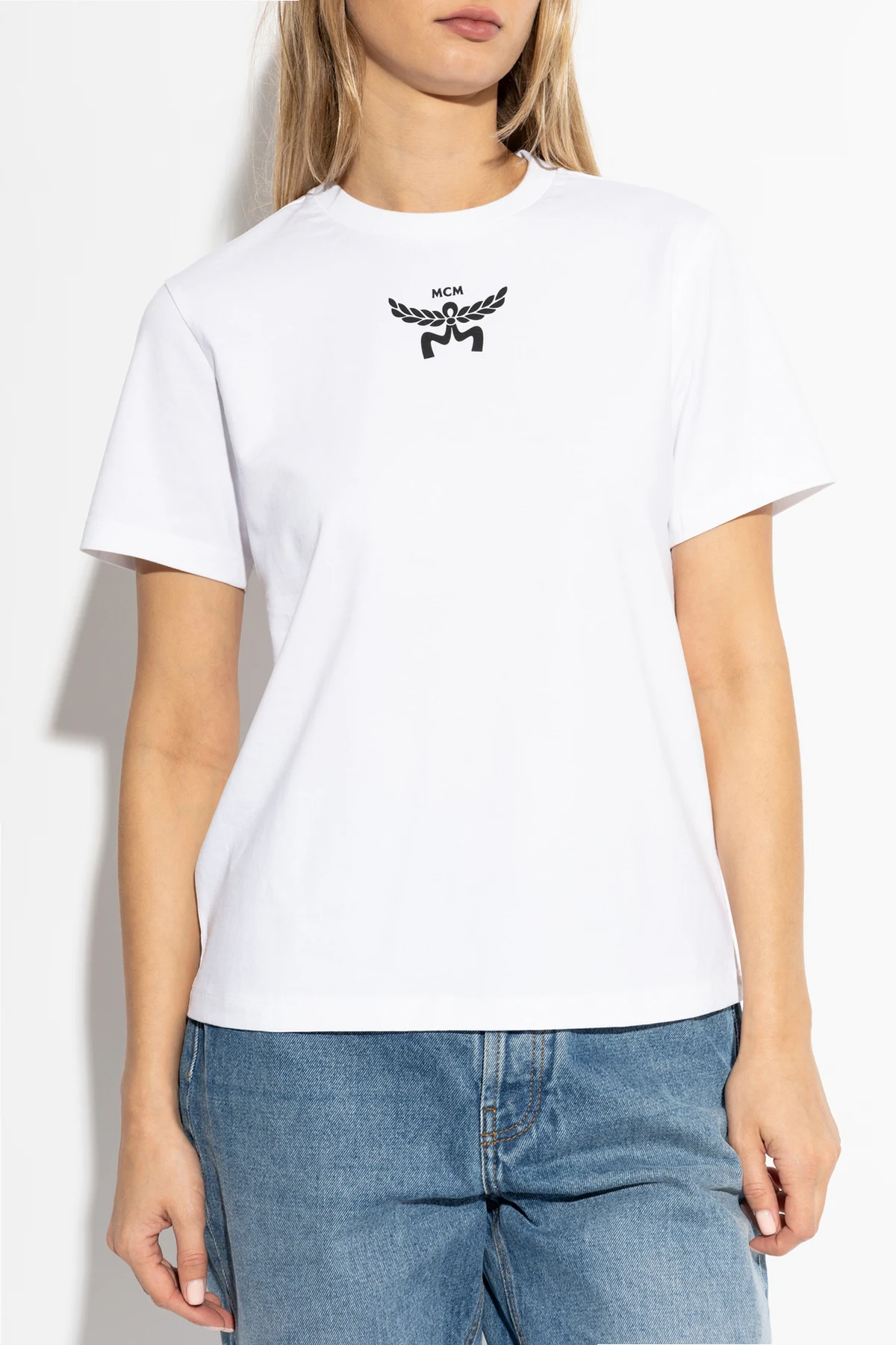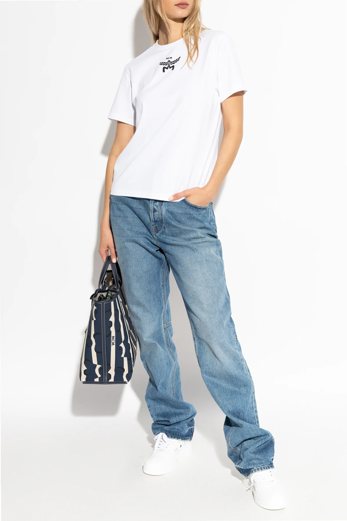 Entdecken Sie die Perfektion in ihrer einfachsten Form mit unserem T-Shirt mit Print der renommierten Marke MCM . Dieses weiße T-Shirt mit kurzen Ärmeln ist die Quintessenz von Klassik und Eleganz, veredelt mit einem schwarzen Print des Logos "MCM". Ein stilisiertes Symbol mit Blättern auf der Vorderseite fügt eine subtile, raffinierte Note hinzu, die jede Modebegeisterte begeistern wird.