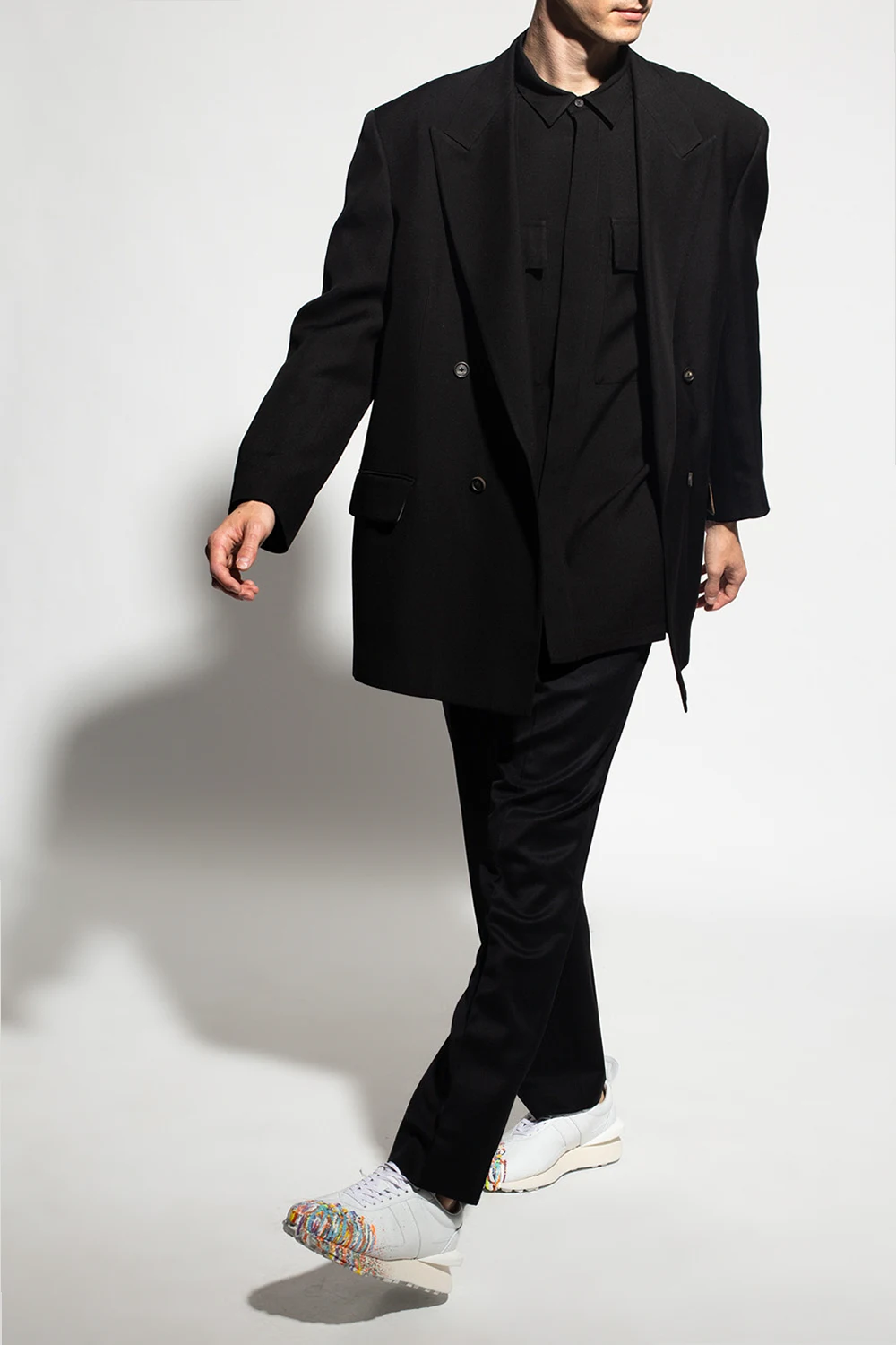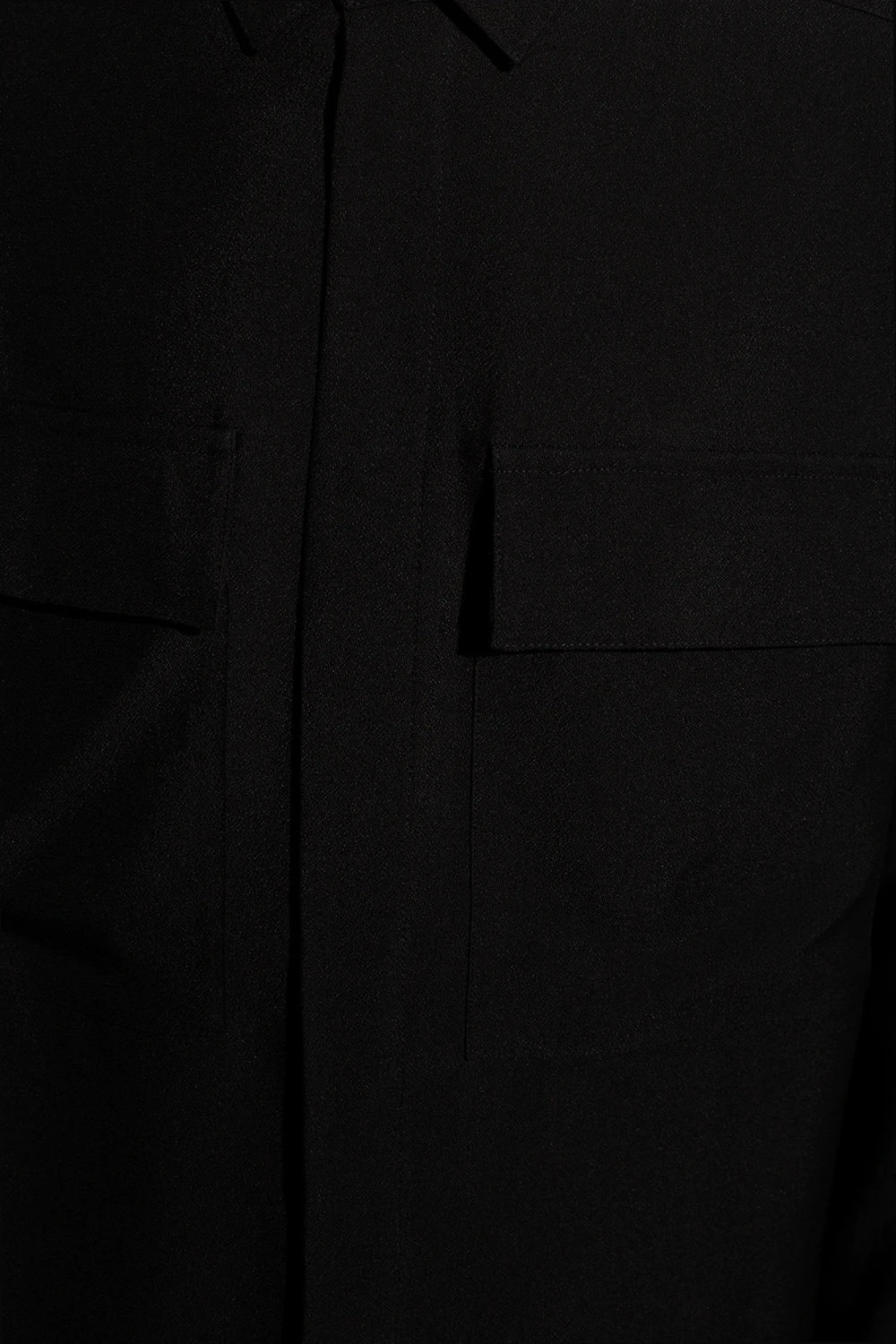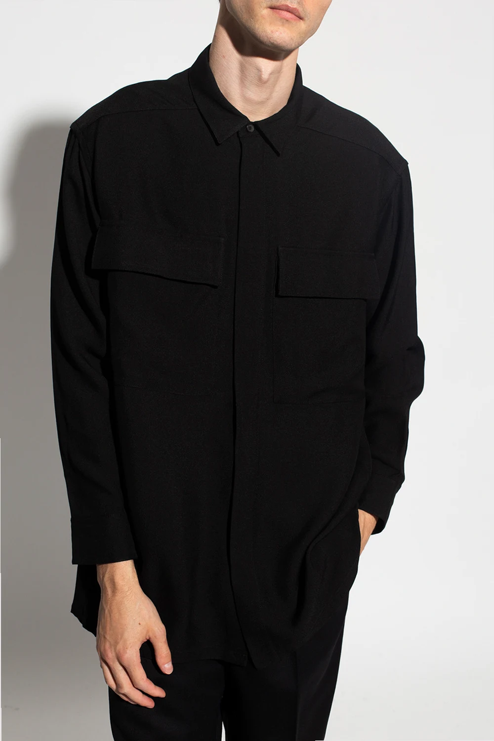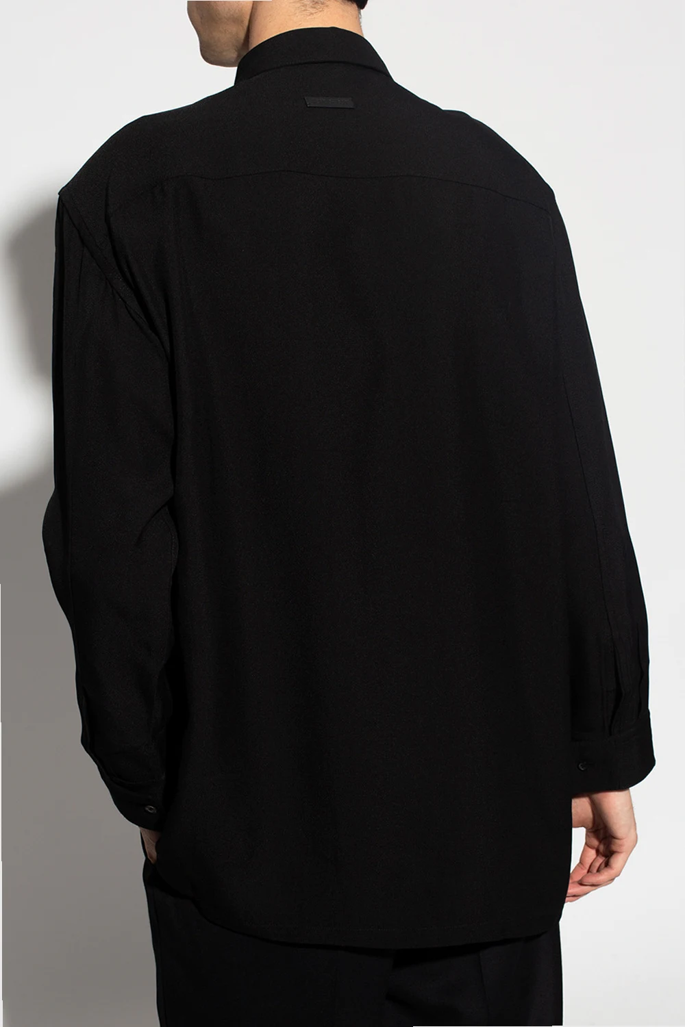 Black shirt from Fear Of God. Fastened with buttons, this design features two buttoned flap pockets and padded shoulders.