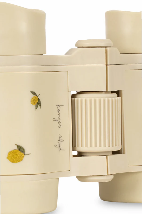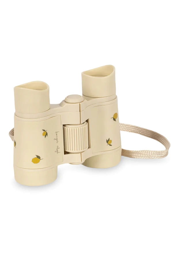 Fernglas ‘Explorer’ der Marke Konges Sløjd ist eine exquisite Wahl für kleine Entdecker und verbindet auf subtile Weise Robustheit mit kindlicher Freude. Die cremefarbene Produktfarbe unterstreicht dezent die Zartheit und harmoniert wunderbar mit den fröhlichen Illustrationen gelber Zitronen und grüner Blätter an den Seiten.