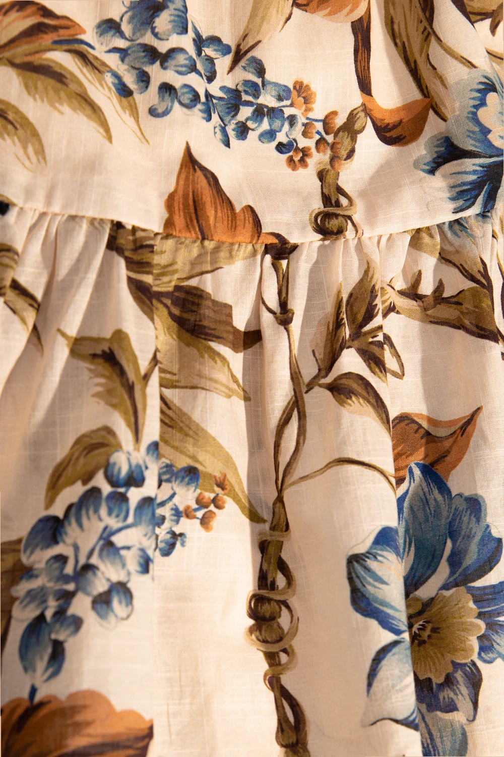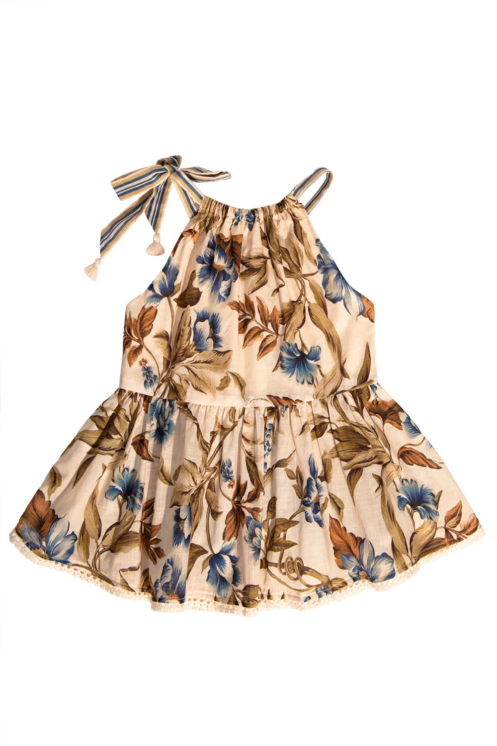 Beige top from Zimmermann Kids. Made of cotton, this design features adjustable shoulder straps, a multicolored floral print and lace trims.