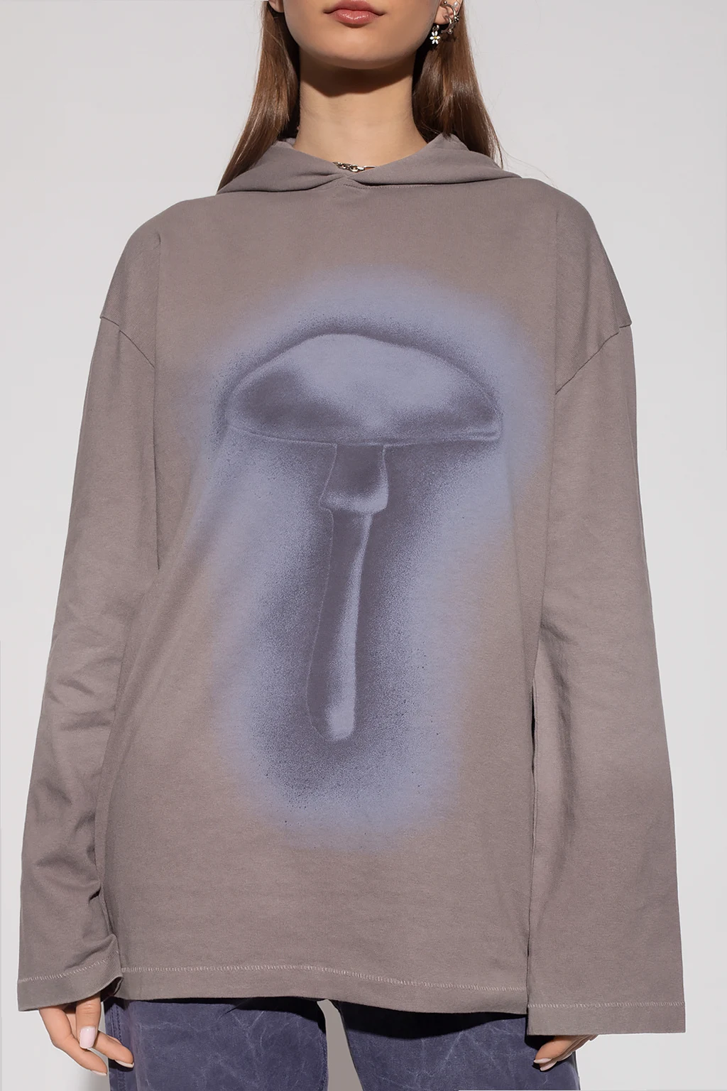 Grey hoodie from Acne Studios. Crafted from cotton, this style features a relaxed-fitting silhouette, long sleeves and a graphic print across the front.