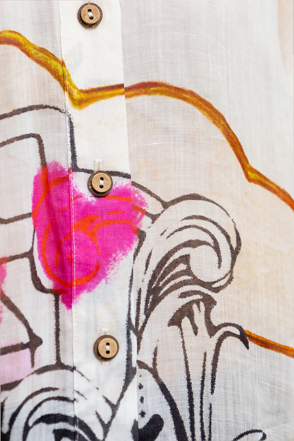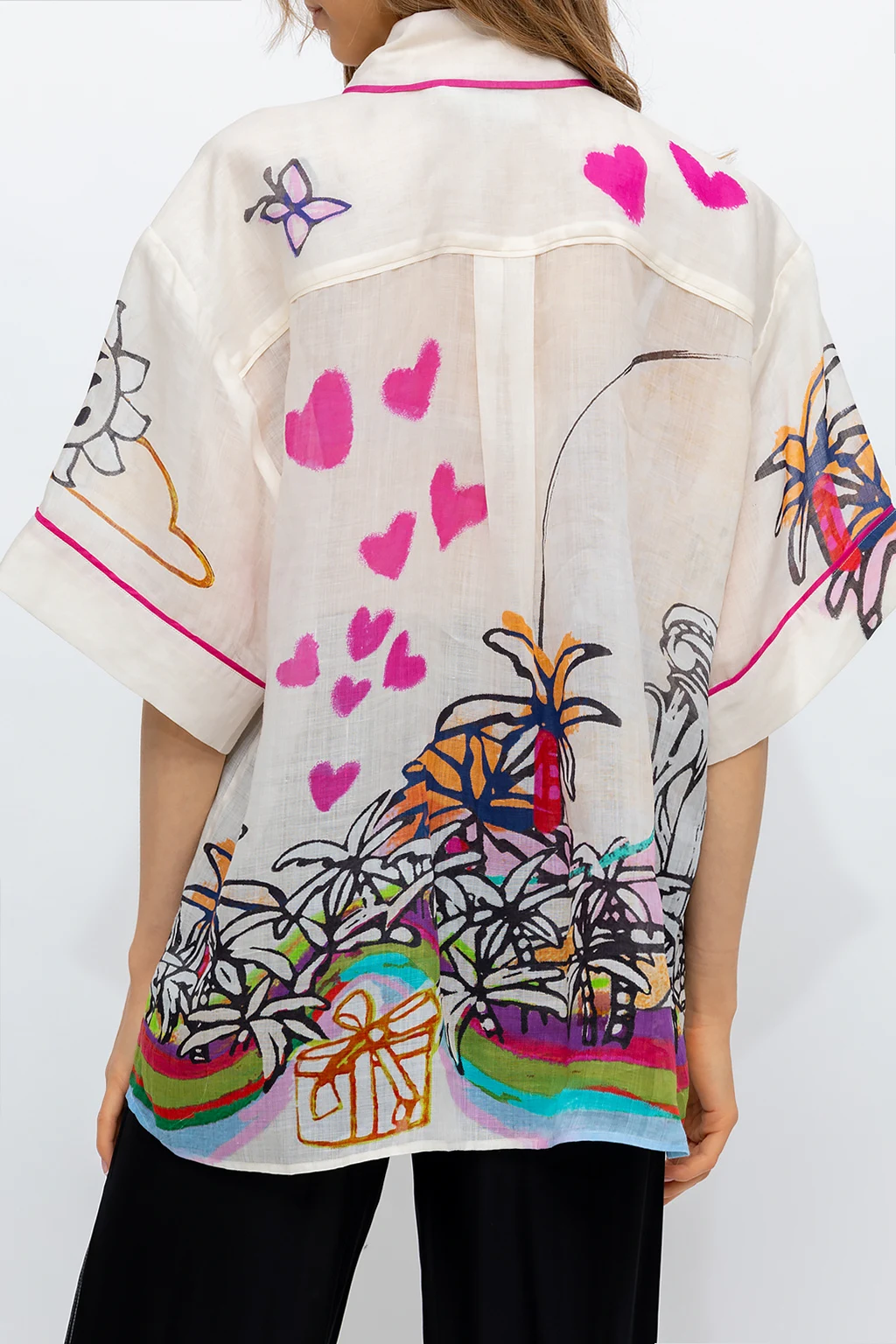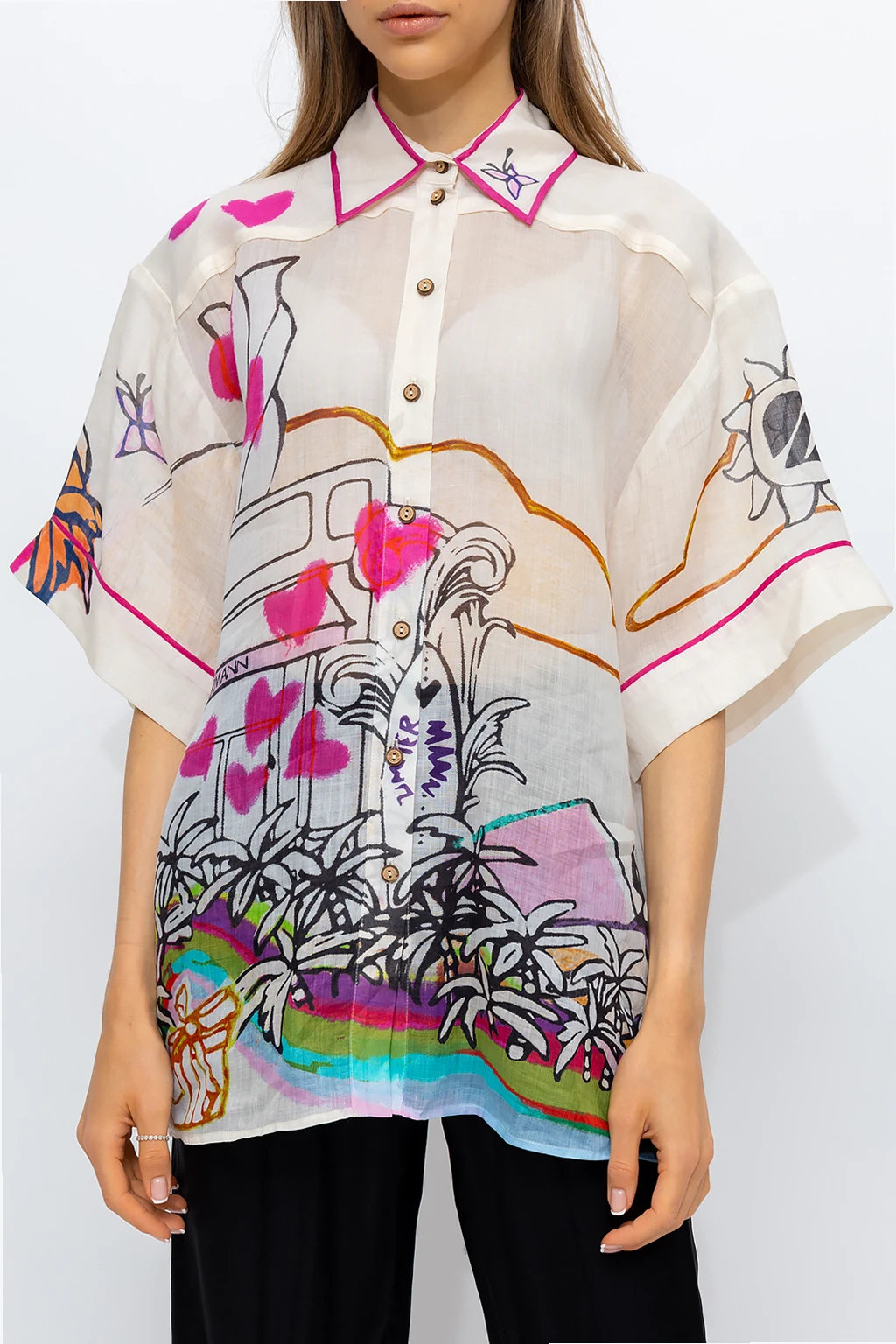 Multicolored oversize shirt from Zimmermann. Made of ramie, this garment features brown buttons, patterns and short sleeves.