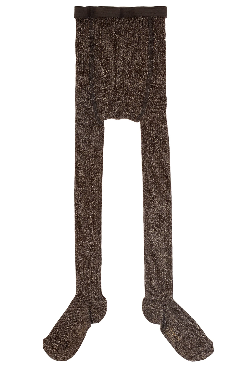 Brown tights from Bonpoint Kids. Crafted from a cotton blend with gold-tone lurex yarns throughout, they feature an elasticated waistband.