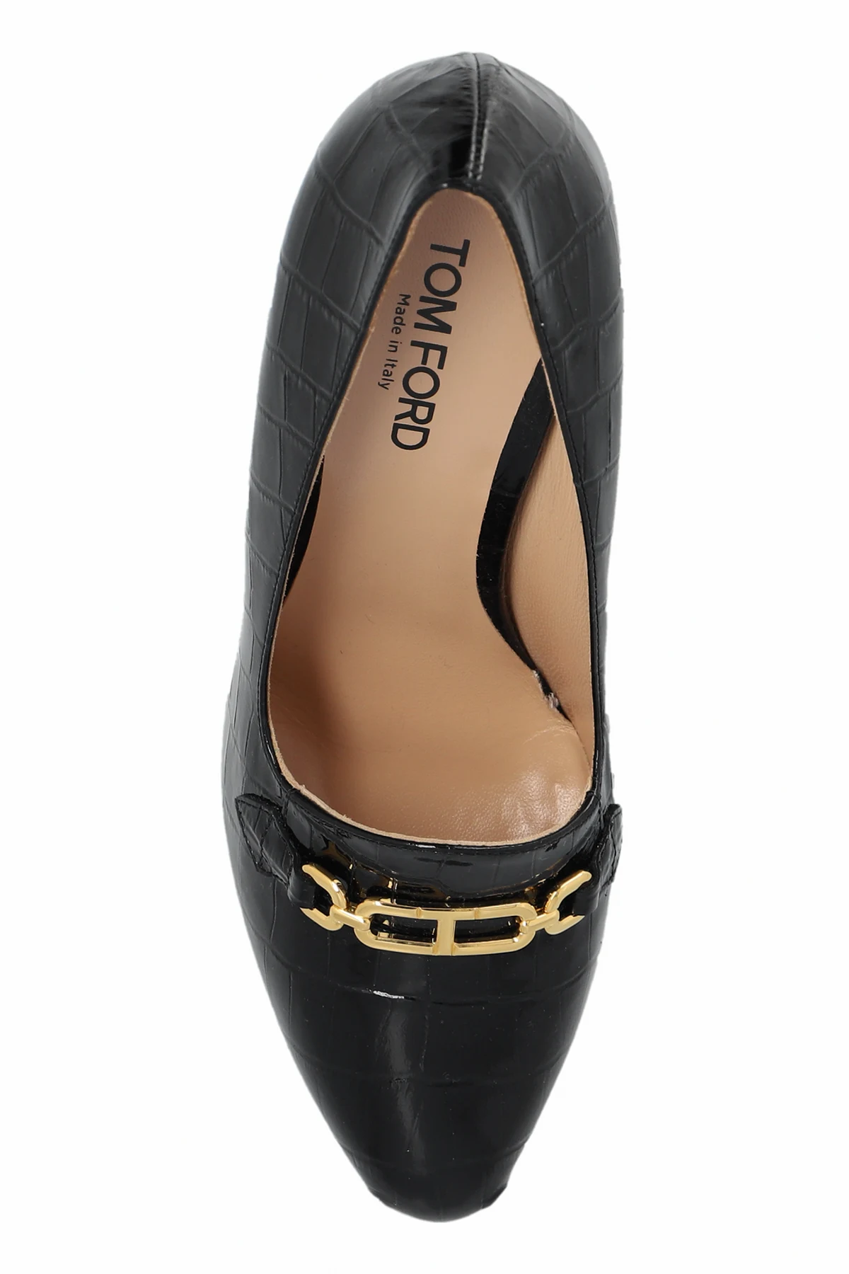 Ein weiteres Highlight ist die goldene Kette auf der Vorderseite der Schuhe, die ihnen einen raffinierten Charakter verleiht. Im Inneren des Schuhs befindet sich der Schriftzug "TOM FORD" sowie die Herkunftsangabe "Made in Italy", was für höchste Qualität der Verarbeitung steht.