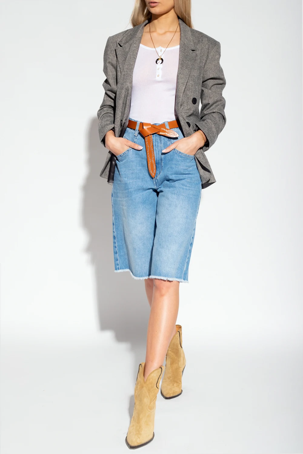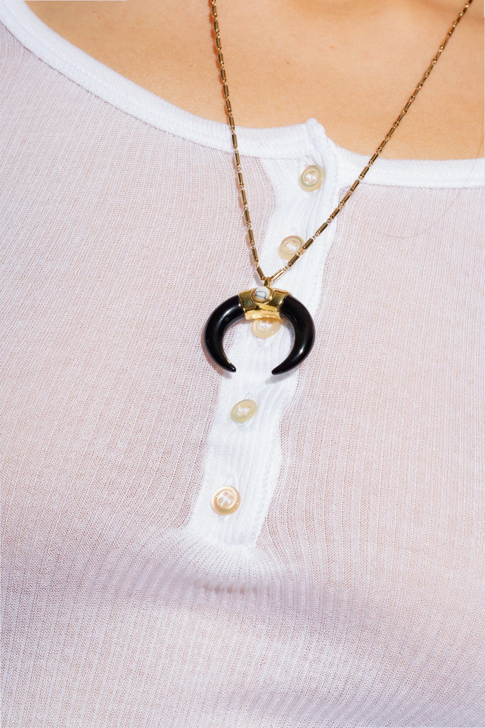 White ‘Lamylic’ crewneck top with long sleeves from Marant Etoile. Crafted from ribbed cotton with a fitted silhouette, this style features a trimmed collar and button closures.
