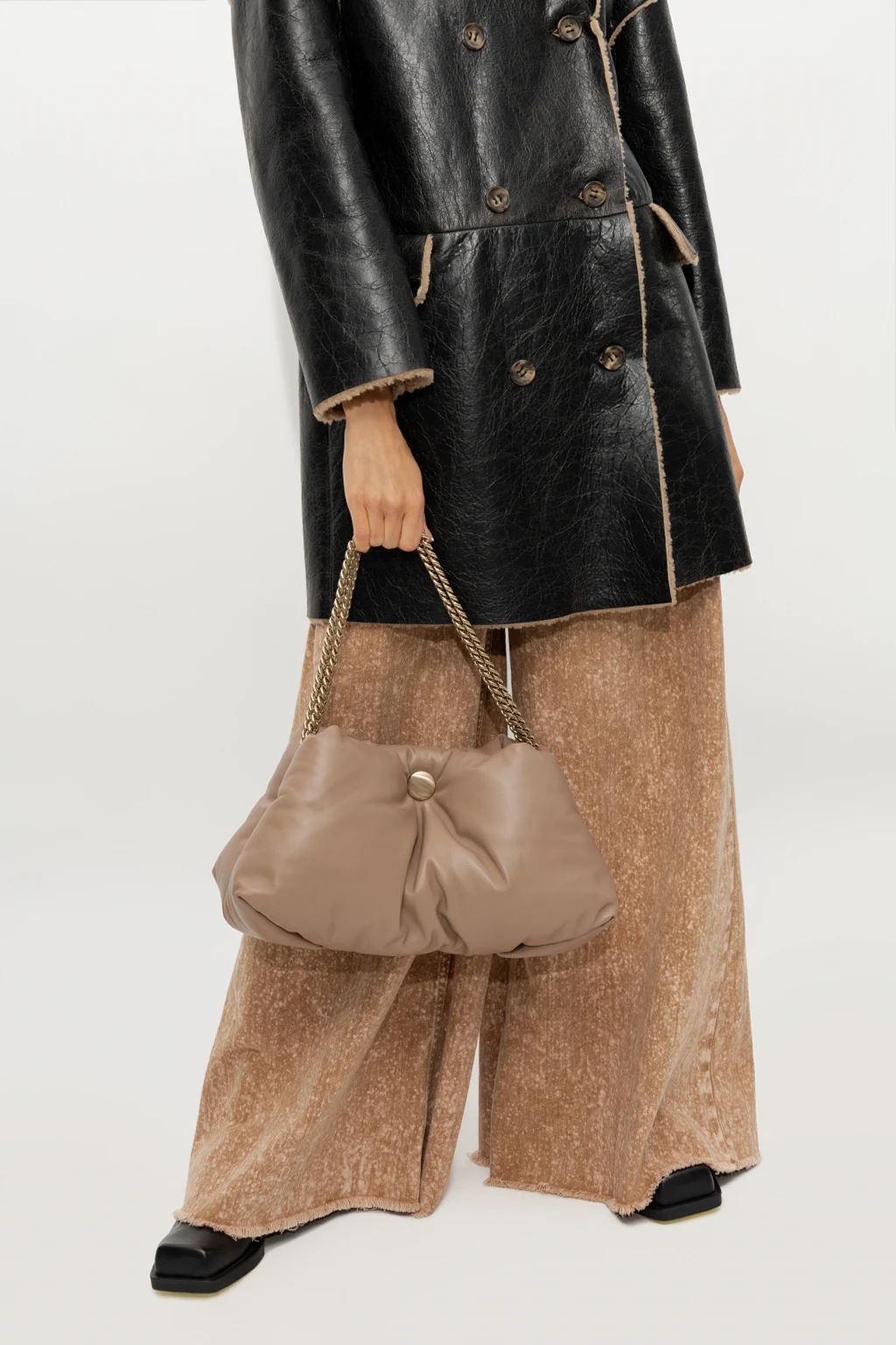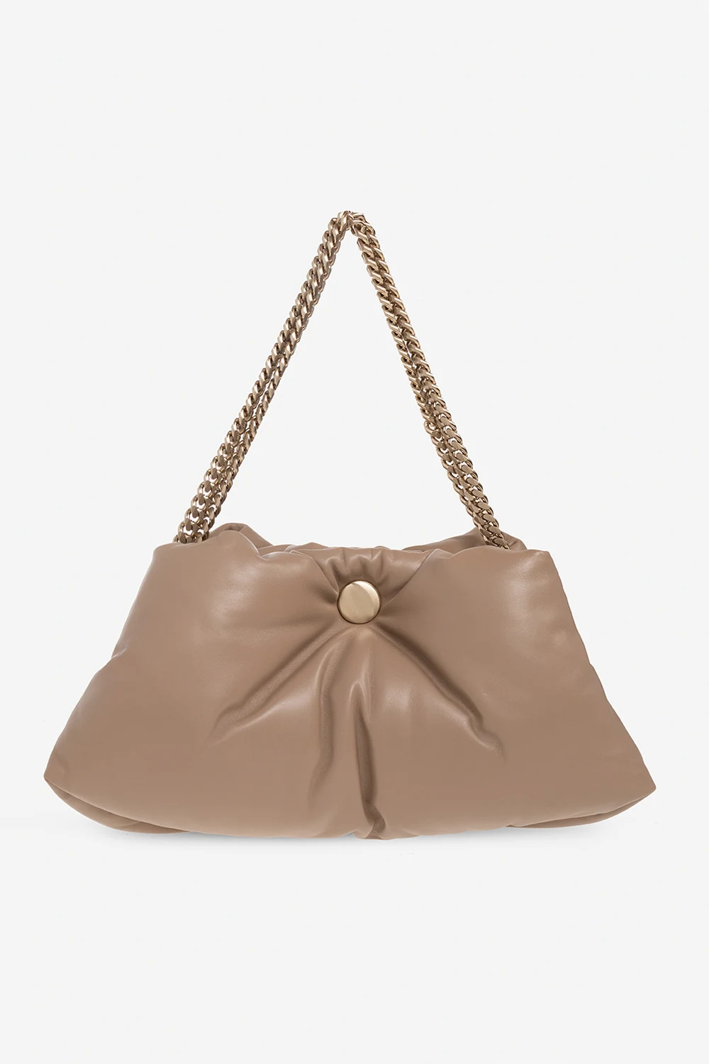 Greyish beige ‘Tobo’ shoulder bag from Proenza Schouler. Made of lamb leather, this model features a white gold-tone magnetic snap, shoulder chain and one internal compartment with two partitions.