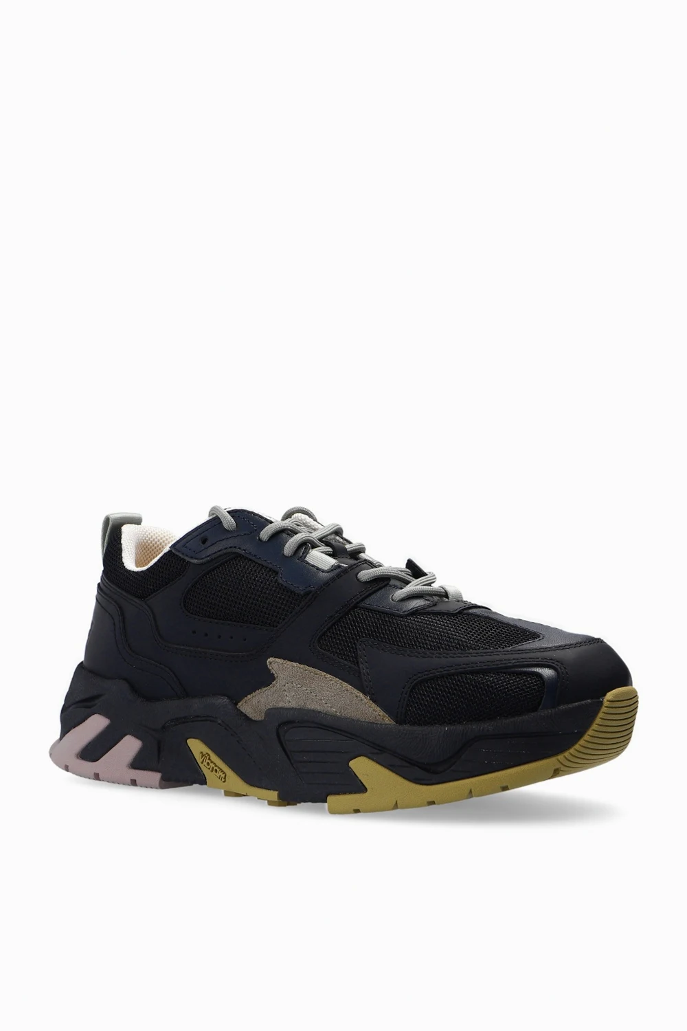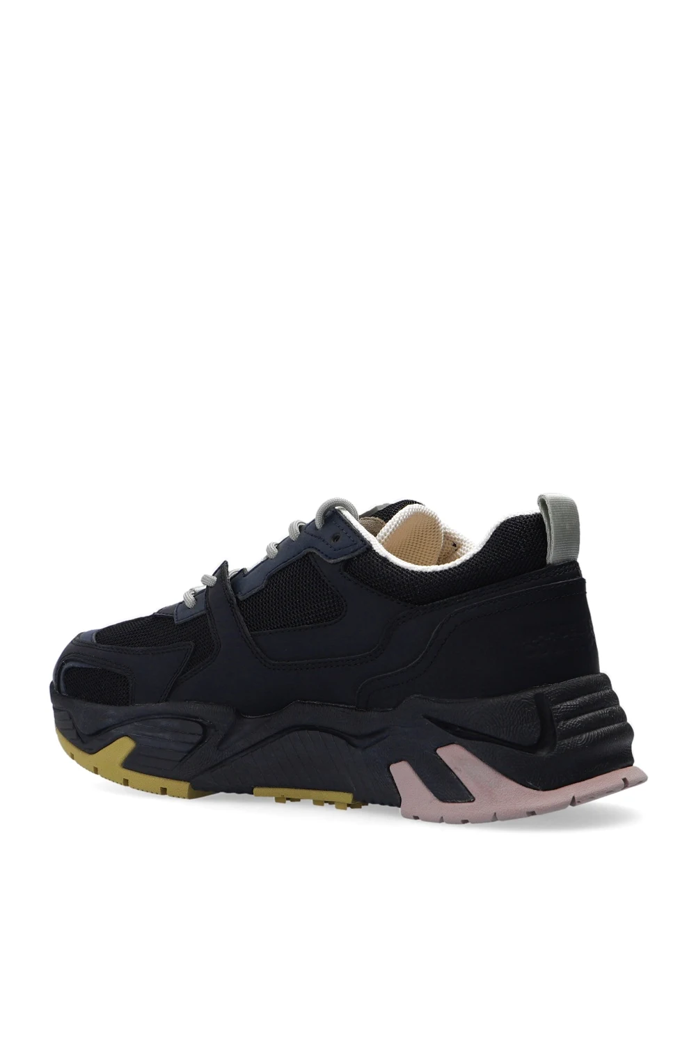 Black and beige ‘Run 3000’ sneakers from Marcelo Burlon. Set on a beige, grey and purple rubber sole, this lace-up design is decorated with a suede inserts.