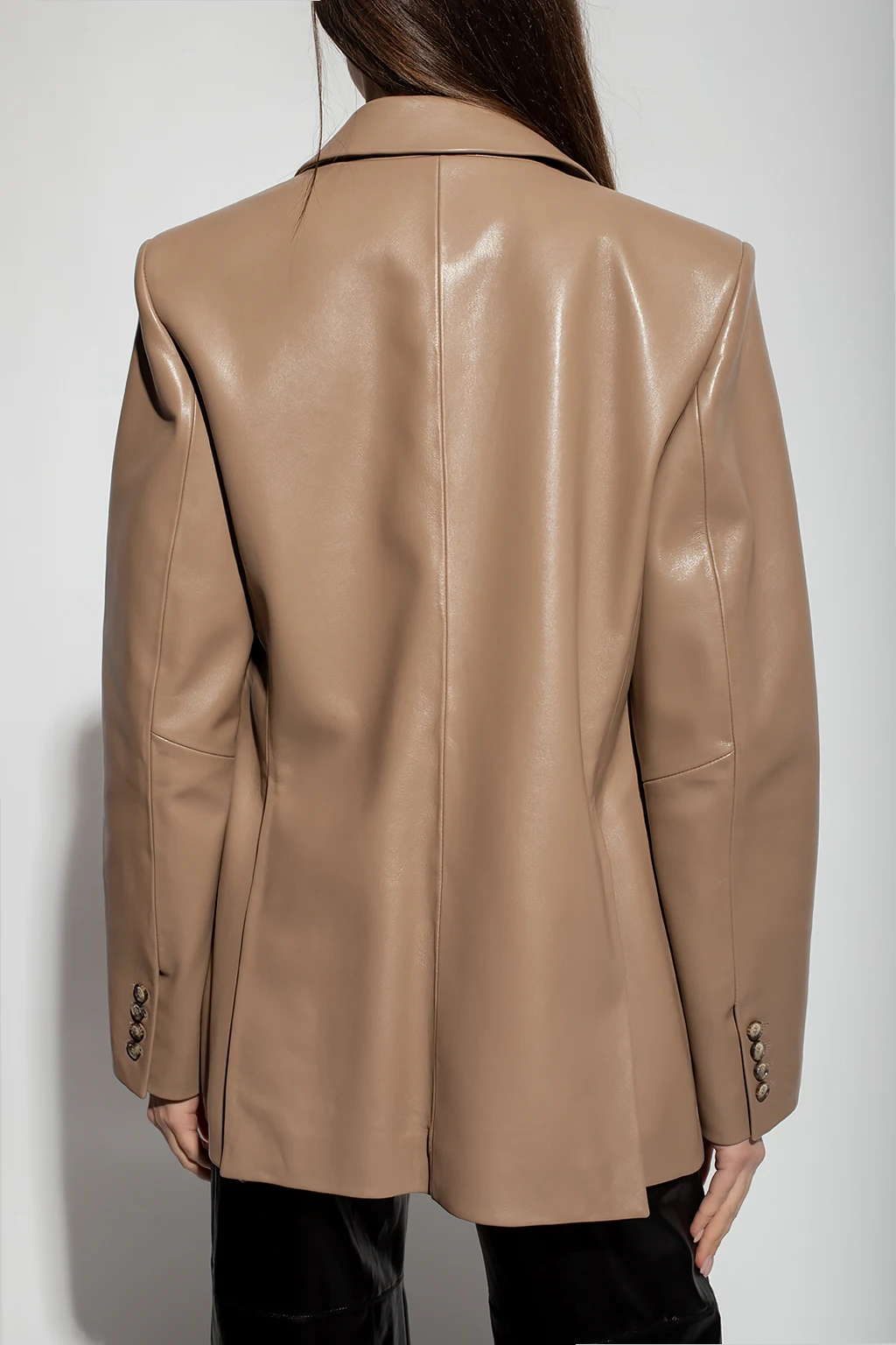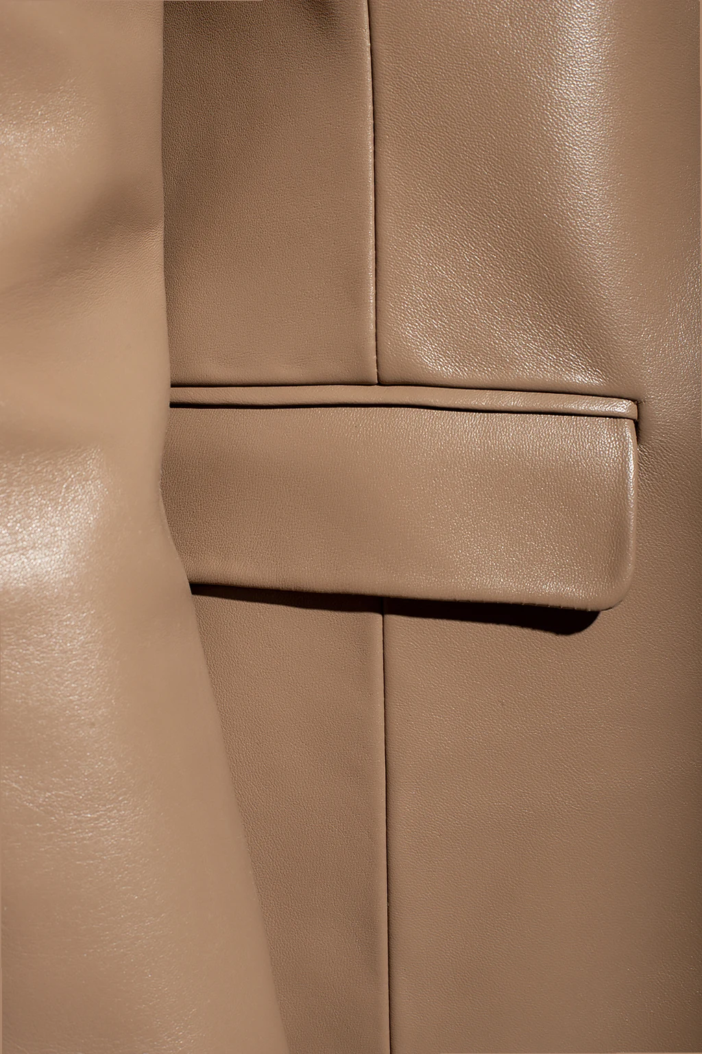 Beige ‘Kerak’ blazer from The Mannei. Made of leather, this garment features peak lapels, button fastenings, two flap pockets, one slip pocket, long sleeves and a double rear vent.