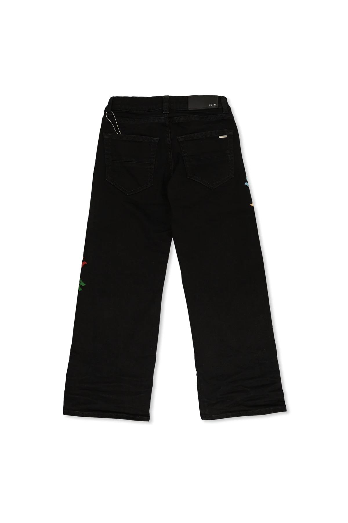 Wir präsentieren Jeans mit Logo von der renommierten Marke Amiri Kids , die die Quintessenz moderner Eleganz und jugendlicher Rebellion sind. Diese schwarzen Jeans aus der exklusiven Kollektion sind aus hochwertigem Denim gefertigt, das aus Baumwolle und Elastan besteht, und bieten sowohl Komfort als auch Haltbarkeit.
