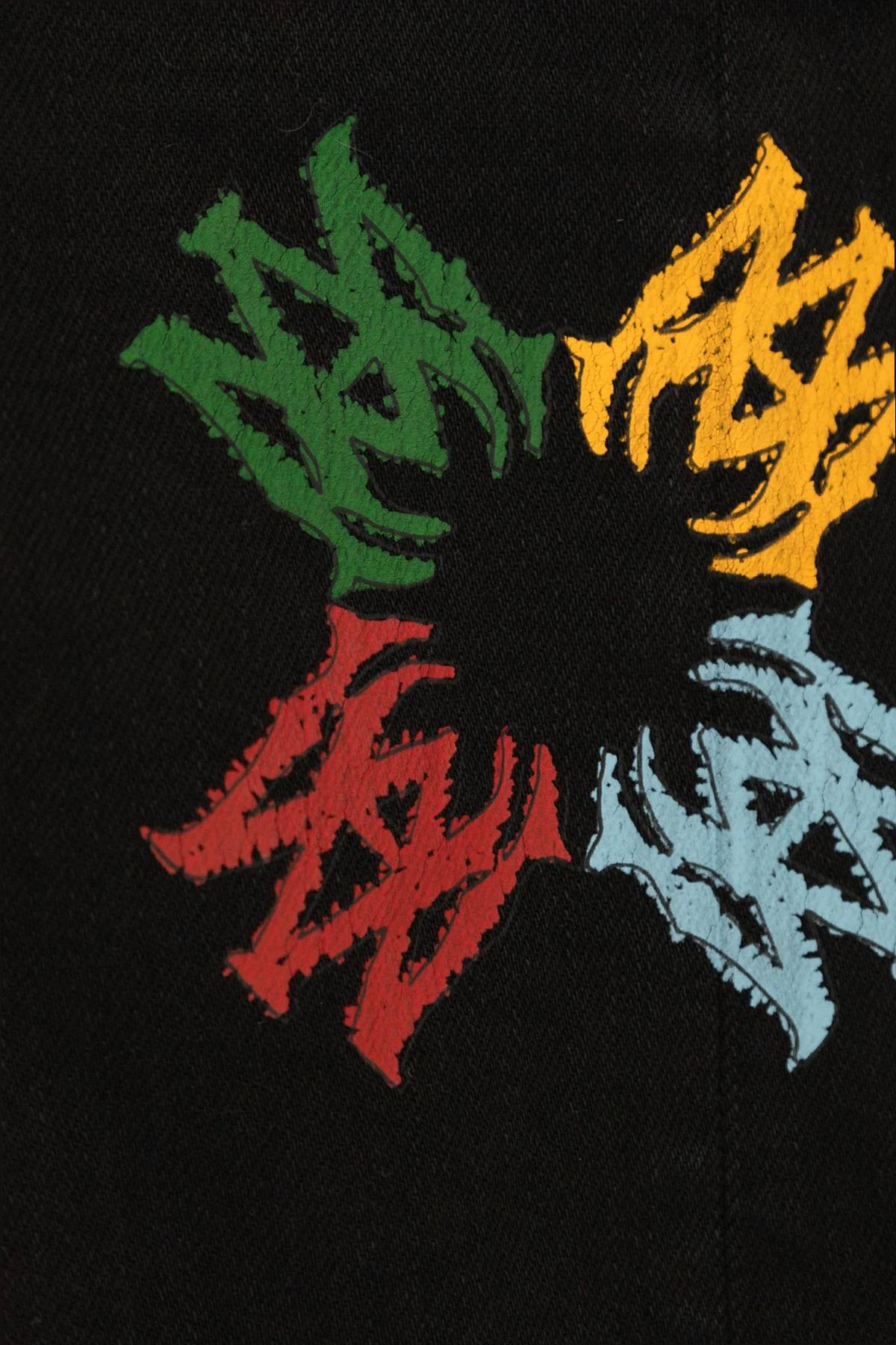 Der gerade Schnitt mit weiten Beinen harmoniert perfekt mit den bunten Stickereien auf der Vorderseite, die den Hosen einen einzigartigen Charakter verleihen. Abstrakte Muster in Rot, Grün, Gelb und Blau machen diese Jeans zu einem echten Schmuckstück in der Garderobe jedes jungen Modebegeisterten. Zusätzlich betonen elegante Details wie der Metallknopf und die Nieten an den Taschen ihren exklusiven Charakter.