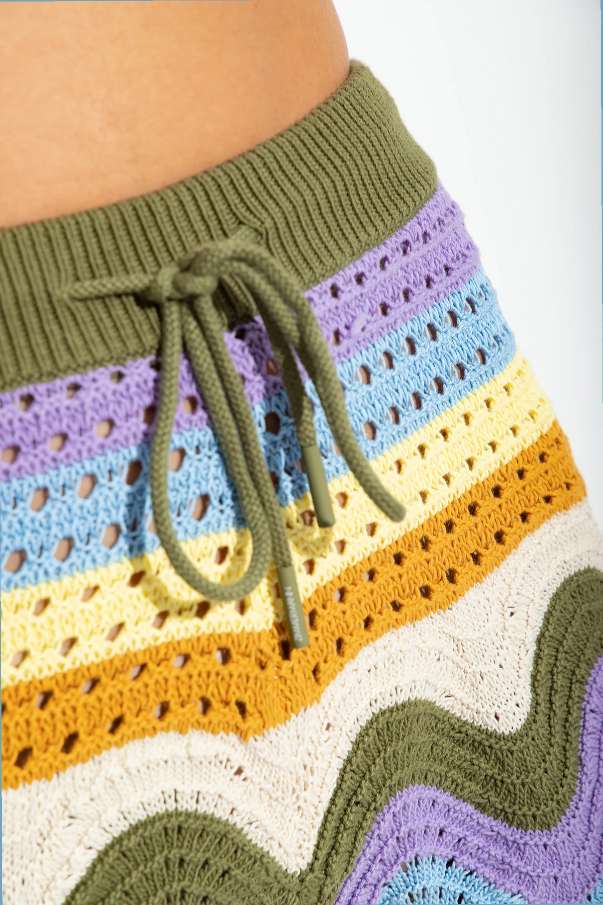 Multicolored high-waisted openwork shorts from Zimmermann. Made of cotton, this design features an elastic drawstring waistband and stripe pattern.