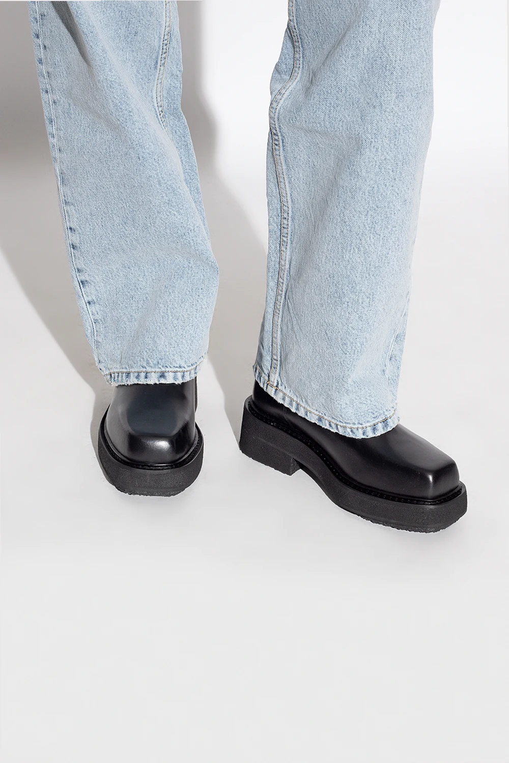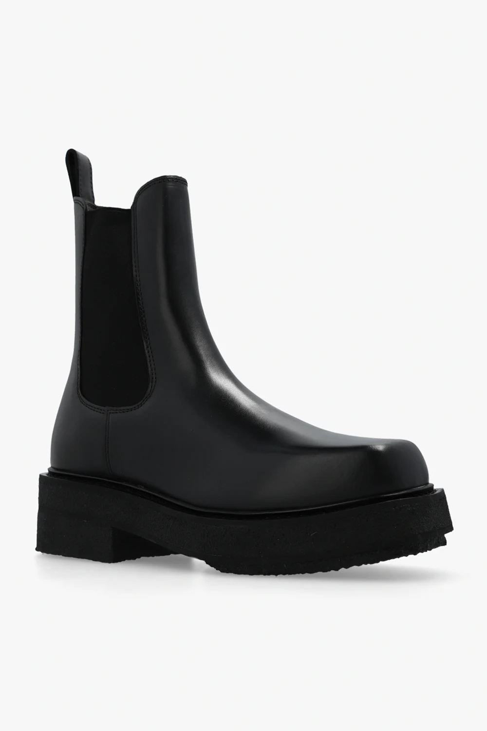Black ‘Ortega II’ platform ankle boots from Eytys. Made of leather, this model sits on a black rubber sole and features a square toe and elastic panels on the sides.