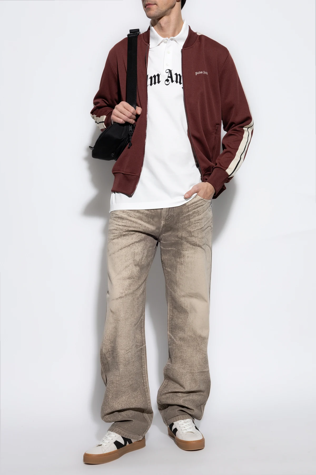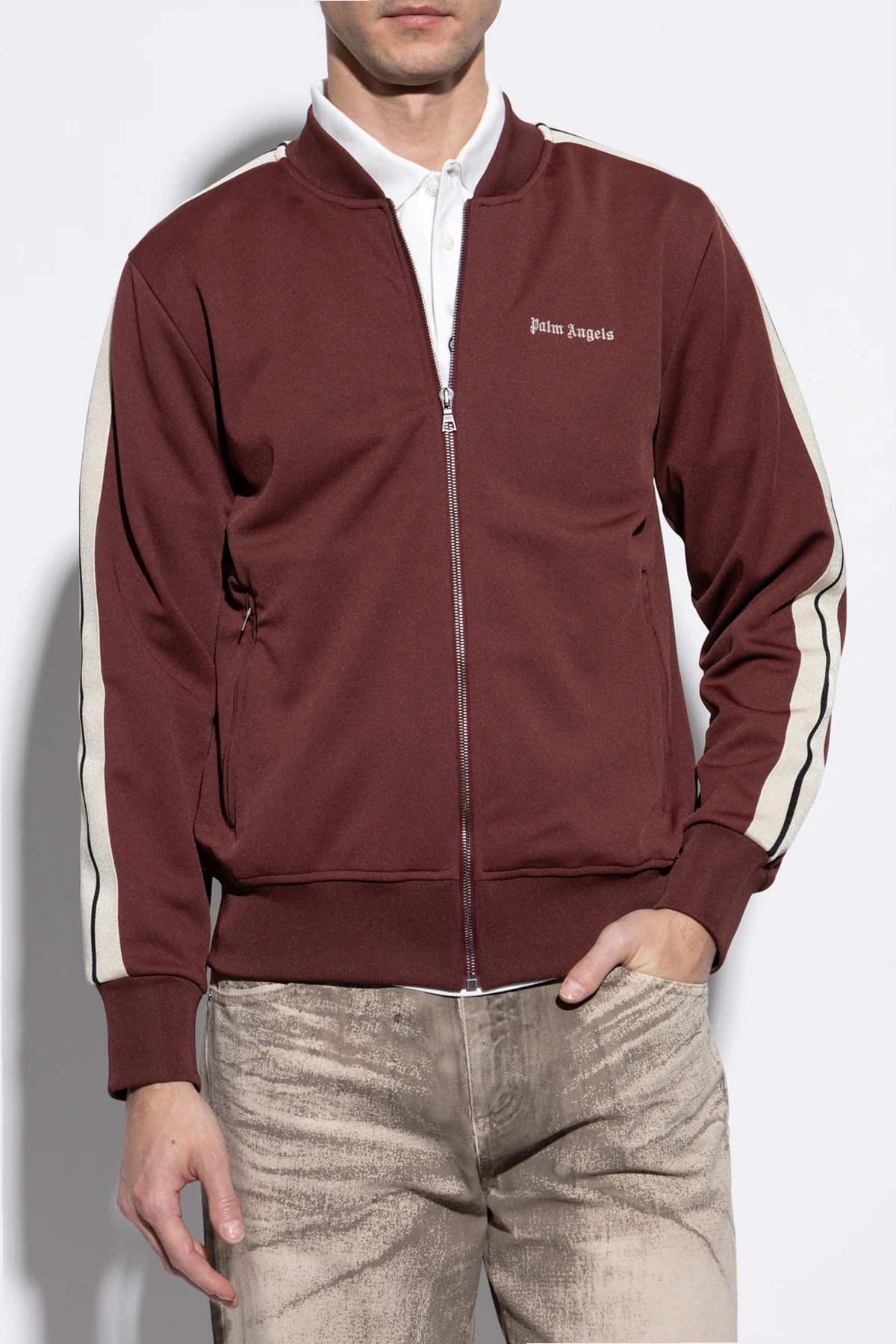 Der einfache Schnitt mit langen Ärmeln und einem Reißverschluss sorgt für Komfort und Bewegungsfreiheit, was es zur idealen Wahl für den Alltag macht. Das charakteristische "Palm Angels"-Logo in Weiß auf der Brust sowie die Bündchen an den Ärmeln und der Taille betonen das einzigartige Design.