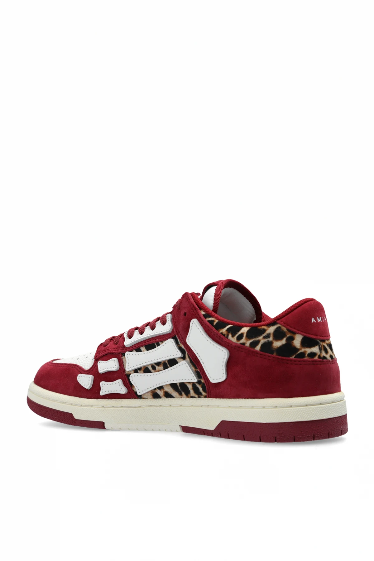 Die dominierende rote Farbe, ergänzt durch weiße und leopardenmuster Akzente, verleiht diesen Schuhen einen unverwechselbaren Charakter. Hergestellt aus einer Kombination von Leder und Wildleder, zeichnen sich diese niedrigen Sneakers durch ein charakteristisches Skelettmuster an den Seiten aus.