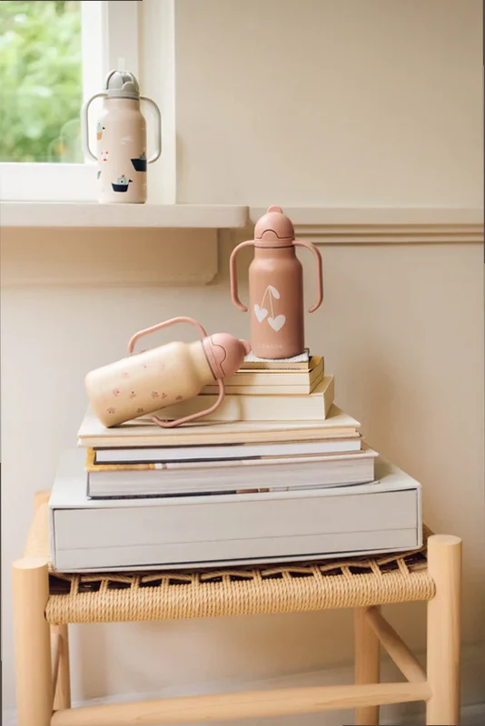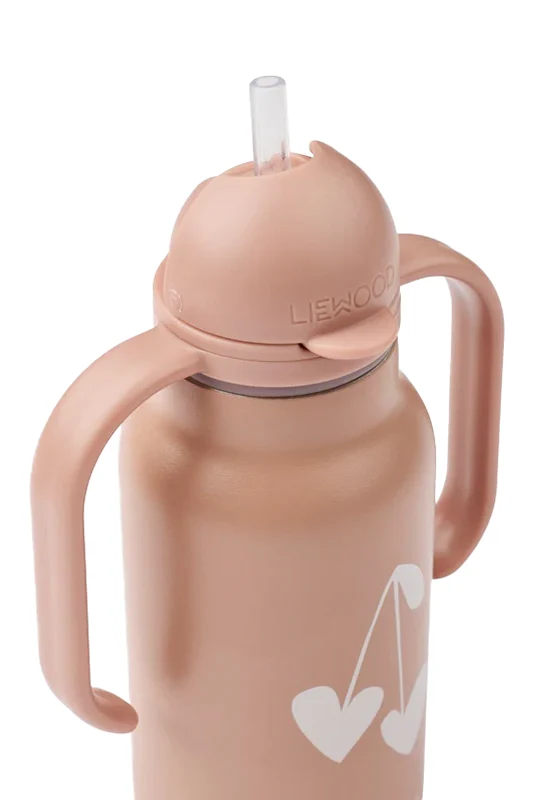 Die Wasserflasche Kimmie von Liewood ist die Quintessenz kindlicher Eleganz in einer funktionalen Ausführung. In einem auffälligen rosa Farbton gehalten, begeistert sie durch ihre perfekt ausbalancierte Form und den dezenten, minimalistischen Print von zwei stilisierten Herzen, die mit kindlicher Freude erstrahlen.