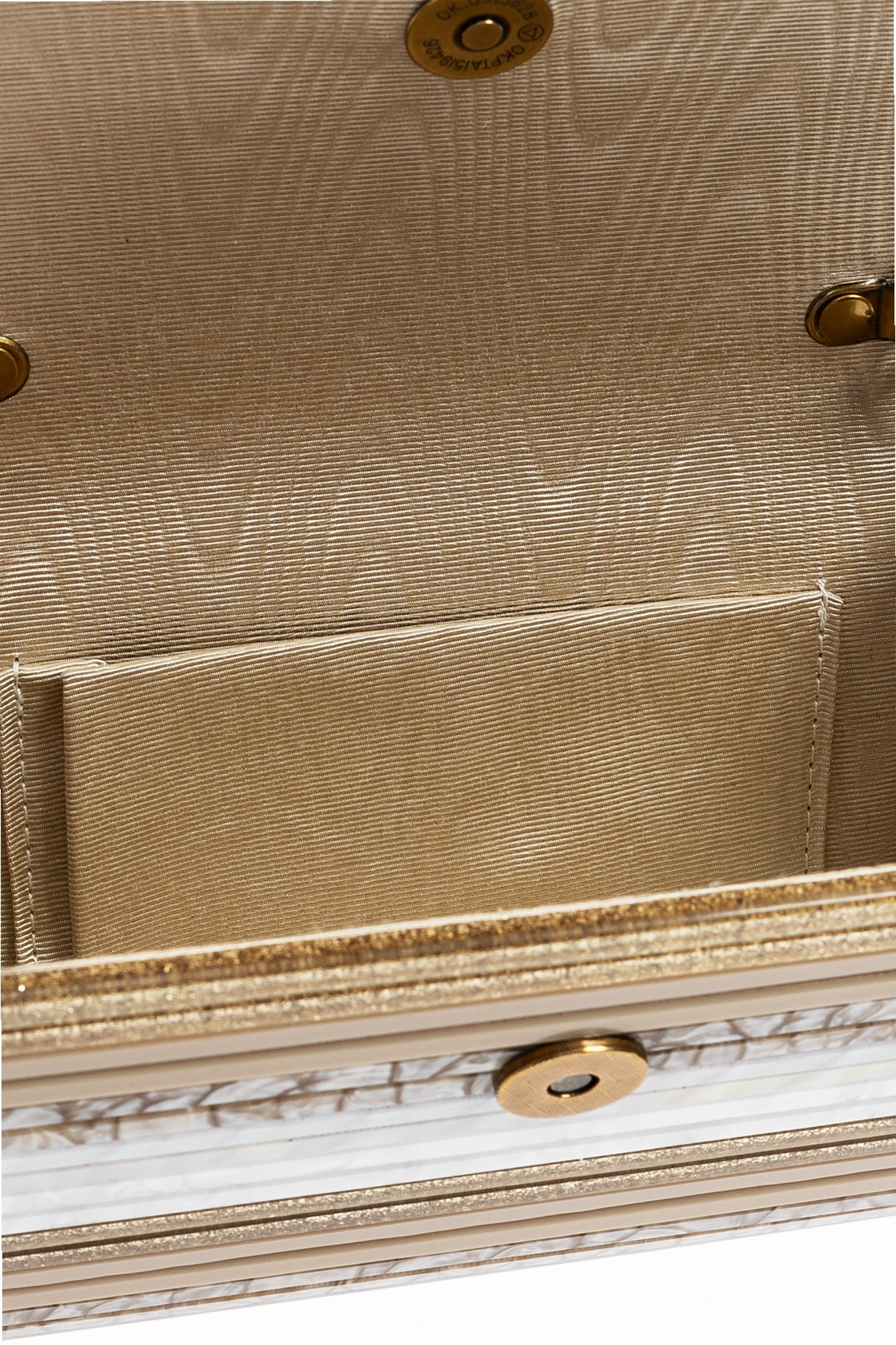 Das Design der Tasche Party Eagle fesselt mit horizontalen Streifen, die verschiedene Texturen verbinden - von metallischem Glanz über glatte Oberflächen bis hin zu geprägten Mustern, die an Schlangenhaut erinnern. Eine solche Kombination von Materialien macht sie nicht nur äußerst attraktiv, sondern auch einzigartig. Ein besonderes Detail, das dieses Modell auszeichnet, ist die Adlerapplikation auf der Vorderseite, die mit Liebe zum Detail in Goldtönen ausgeführt ist.