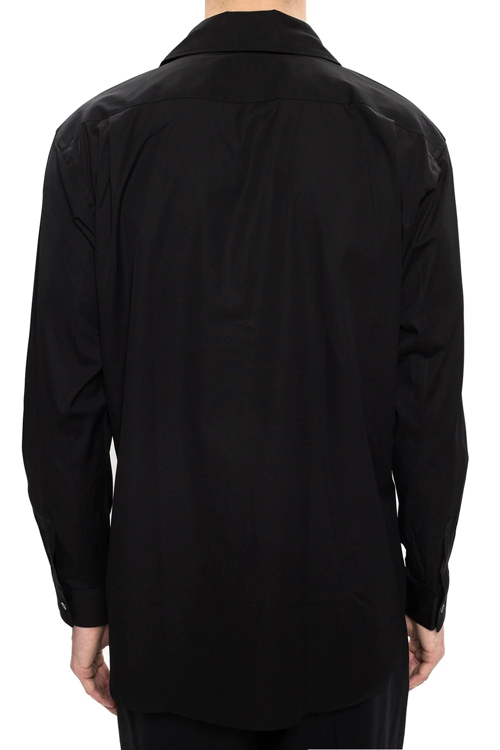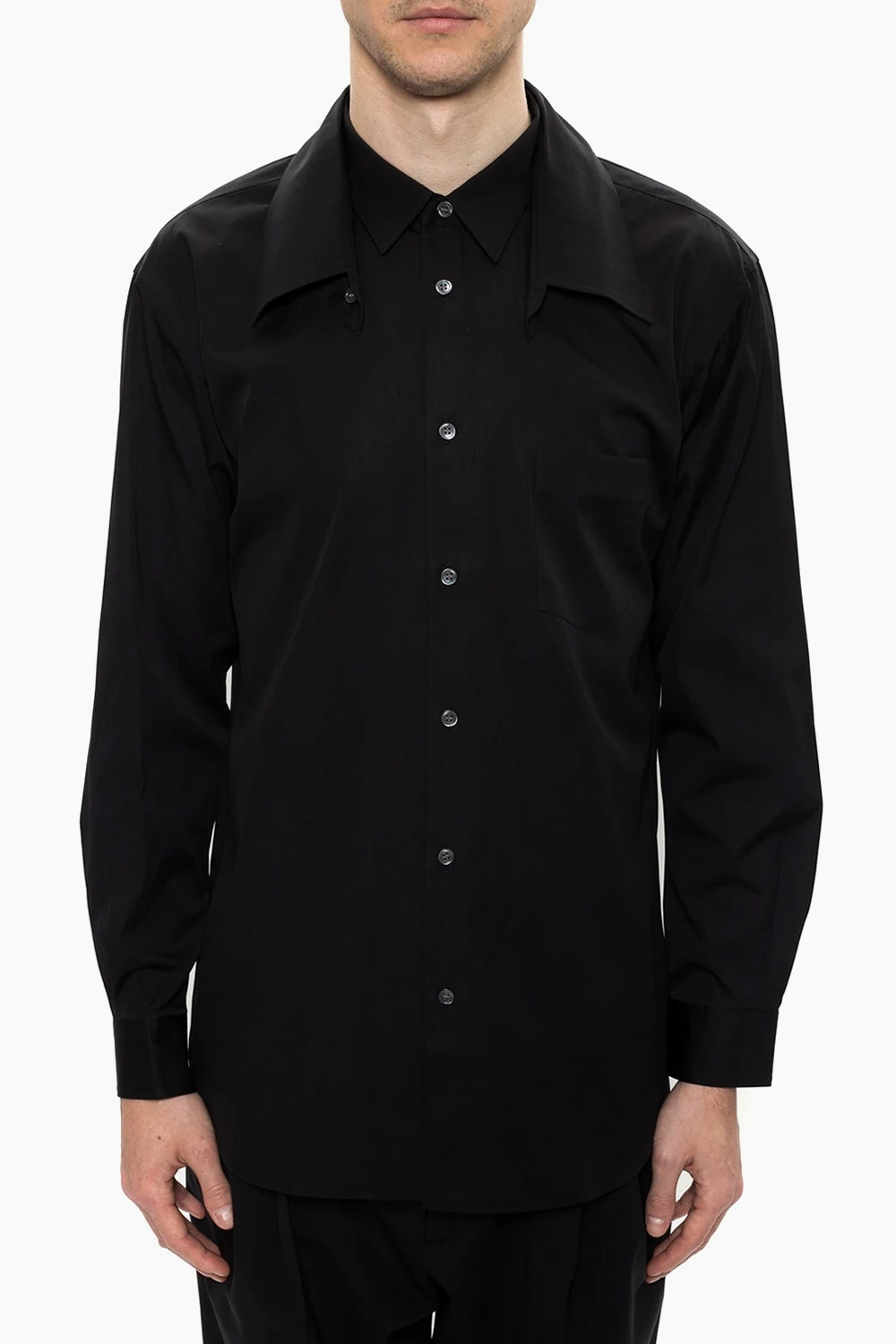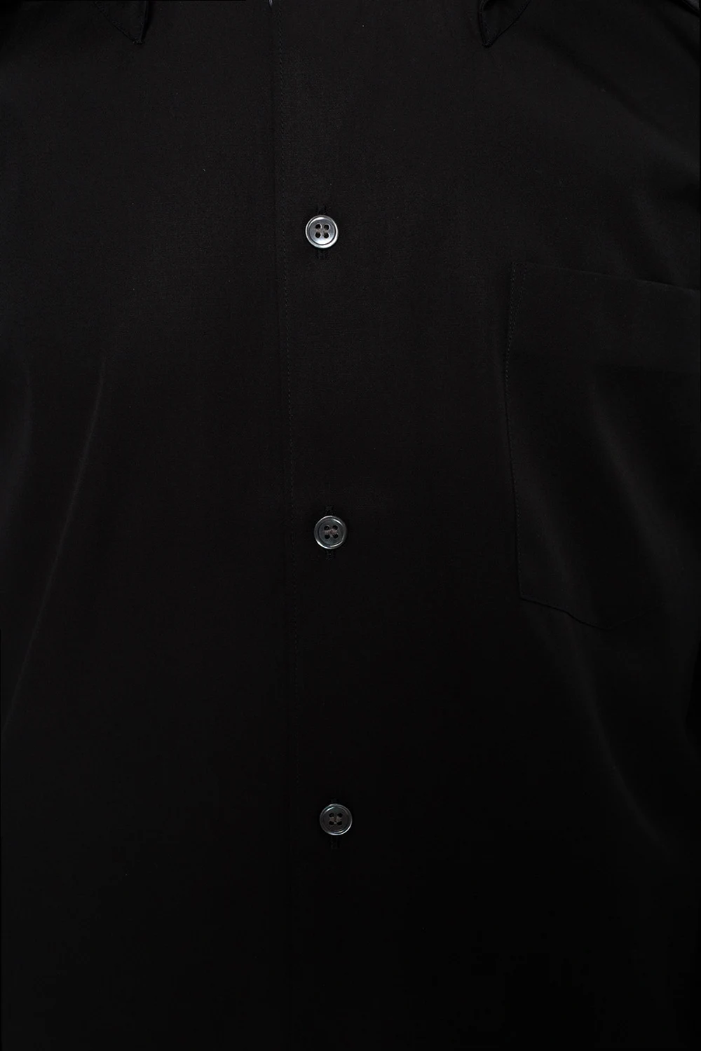 Black shirt with a double collar from Comme des Garcons Shirt. Made of cotton. Fastened with buttons. Slip pocket on the front.