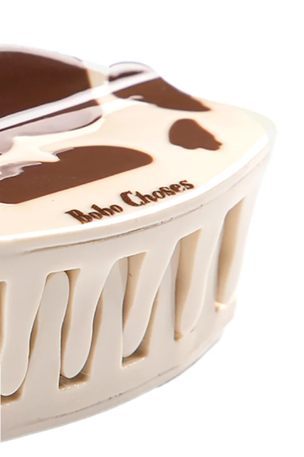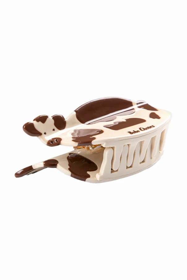 Haarklammer der Marke Bobo Choses ist ein außergewöhnlicher Vorschlag, gewidmet den jüngsten Liebhabern ausgefallener Accessoires. Dieser exquisite Akzent, gefertigt aus glattem, glänzendem Kunststoff, nimmt eine faszinierende Form an – das gesamte Design ist einer seitlich liegenden Kuh nachempfunden. Kunstvoll ausgearbeitete Details: Augen, Ohren, Nüstern, Kopf mit Hörnern sowie ein Schwanz verleihen eine verspielte Eleganz und unterstreichen den künstlerischen Charakter des Entwurfs.