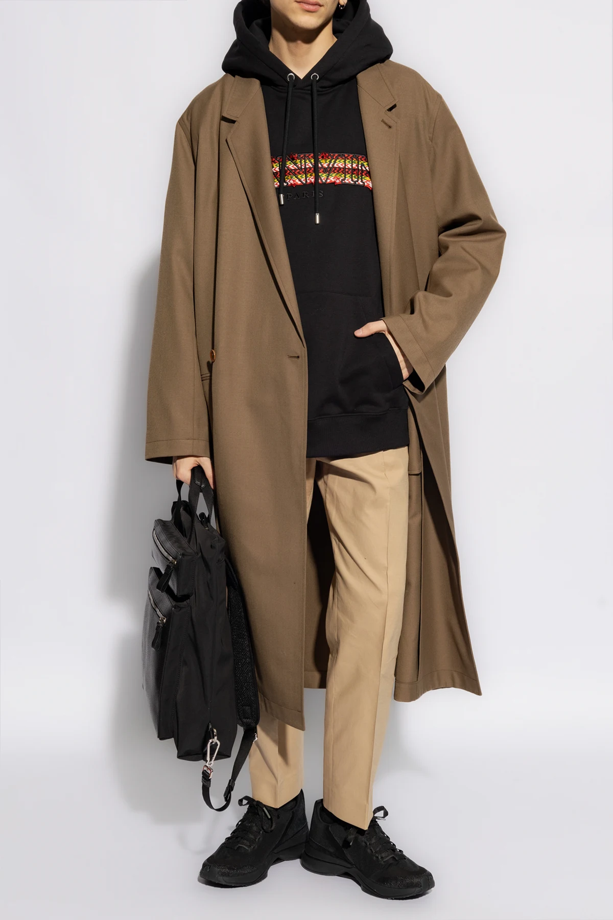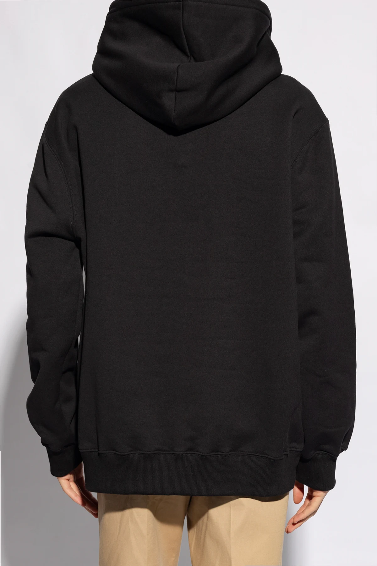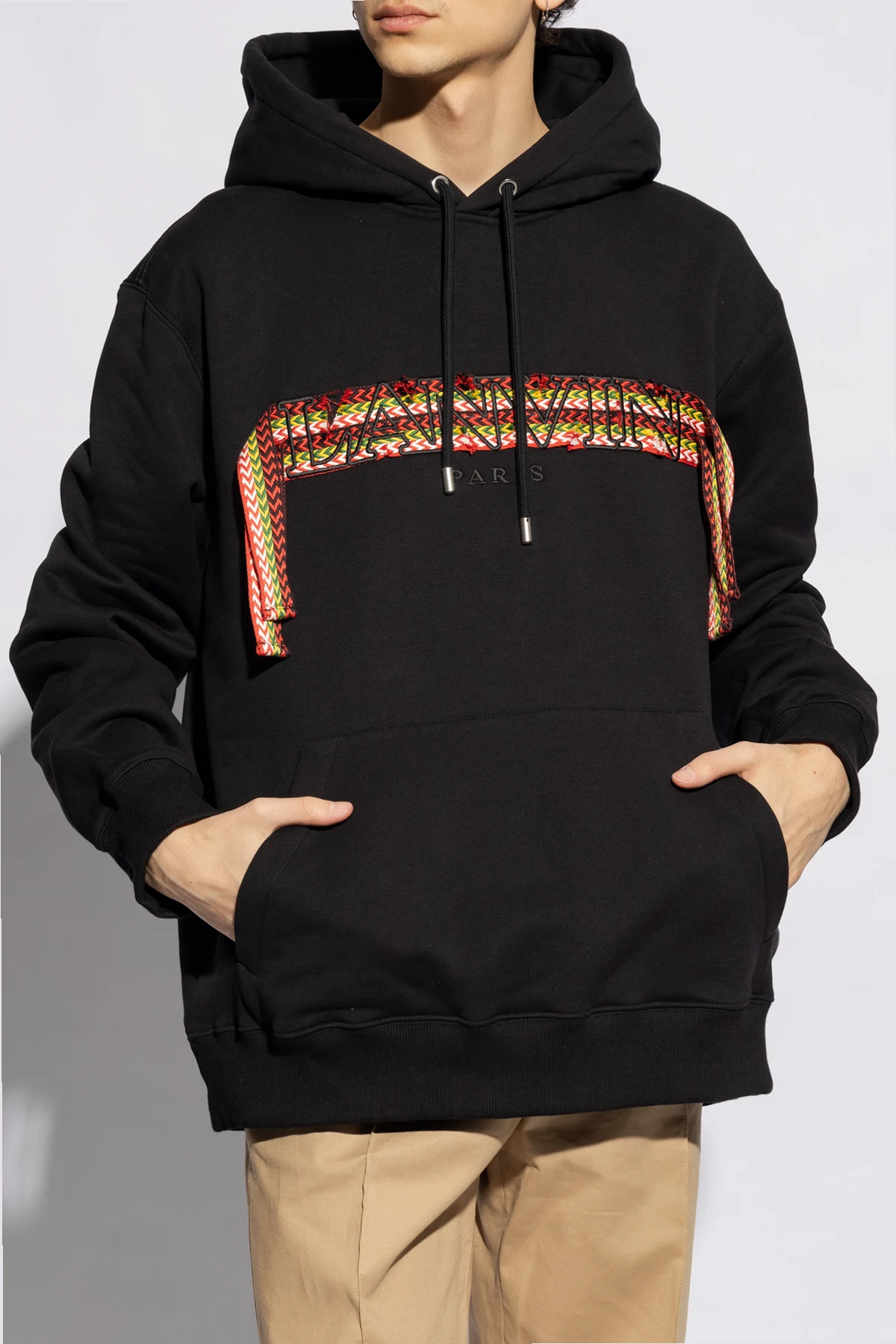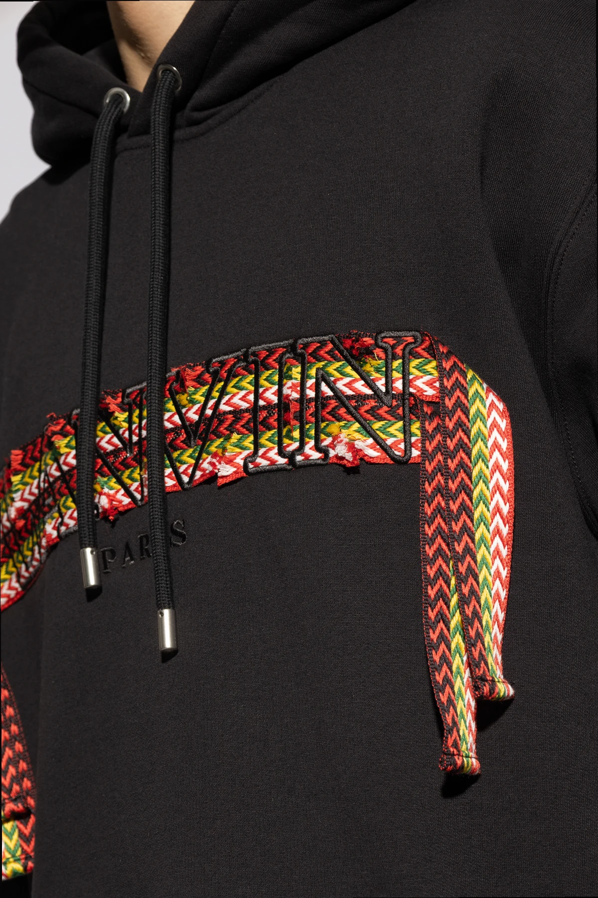 Black sweatshirt with a drawstring hood from Lanvin. Made from cotton, this style showcases a colourful, braided logo patch with fringes, a kangaroo pocket, long sleeves and ribbed trims on the bottom hem and cuffs.