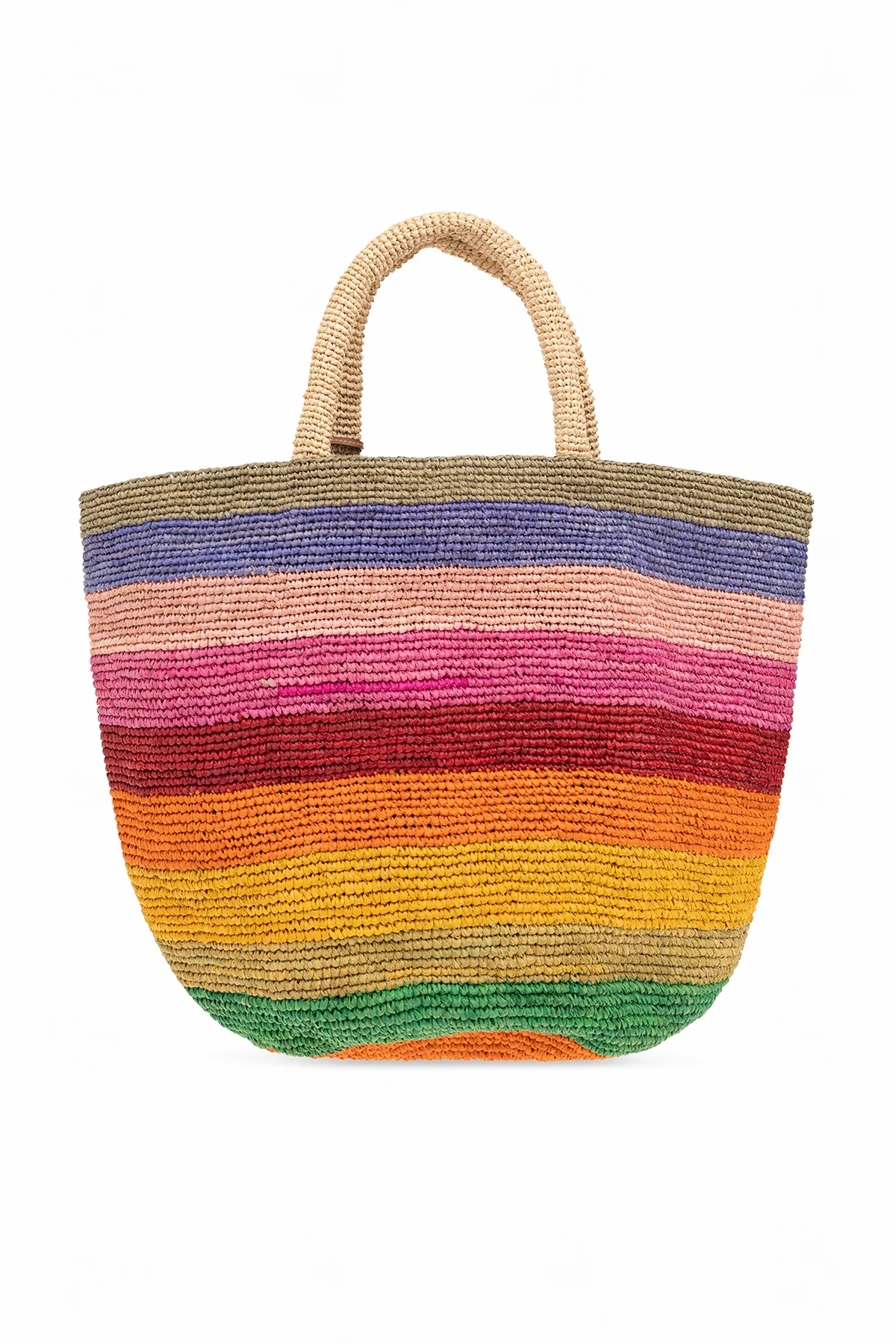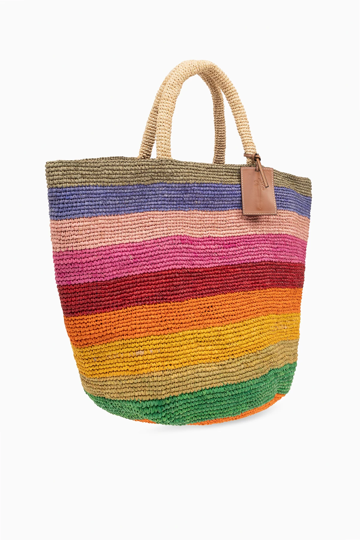 Hergestellt aus geflochtener Raffia und verziert mit Lederdetails , einschließlich des charakteristischen Logos des Designers, strahlt die ‘Summer’ Tasche hohe Qualität und Liebe zum Detail aus. Zwei robuste, geflochtene Griffe betonen nicht nur die Einheitlichkeit des Designs, sondern bieten auch Tragekomfort. Das innere Etikett zeugt von der Authentizität und dem exklusiven Charakter des Produkts, was seine Einzigartigkeit und seinen Wert bestätigt.