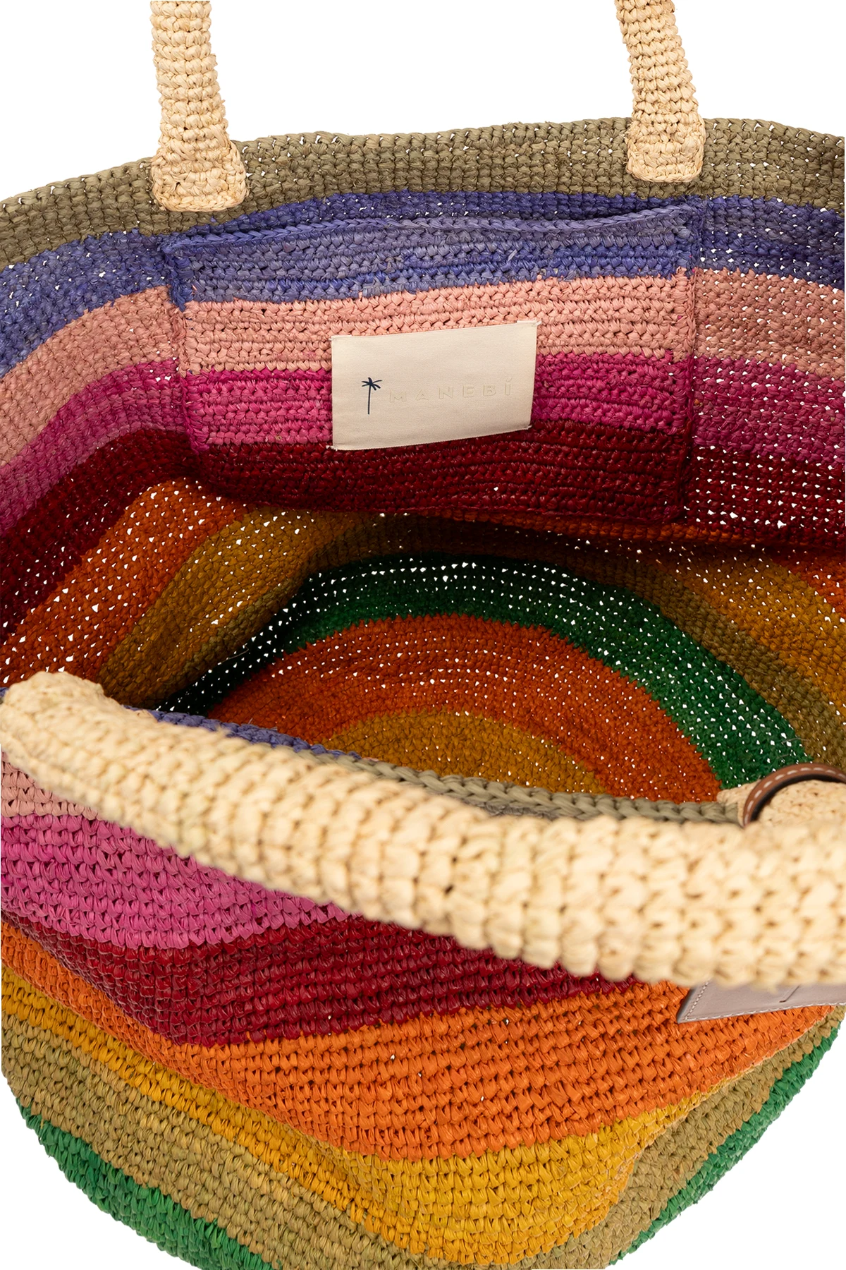 Wir präsentieren die Geflochtene ‘Summer’ Shopper-Tasche vom renommierten Designer Manebí , welche Funktionalität mit einem einzigartigen Stil vereint. Diese außergewöhnliche Tasche wird jede Sommergarderobe mit ihrem mehrfarbigen Muster beleben, das Regenbogenstreifen in Schattierungen von Blau, Rosa, Rot, Gelb und Grün kreiert. Ihre klassische, abgerundete Form, die nach oben hin breiter wird, ermöglicht es, zahlreiche Gegenstände bequem zu verstauen und macht sie zum perfekten Begleiter für jeden Tag.