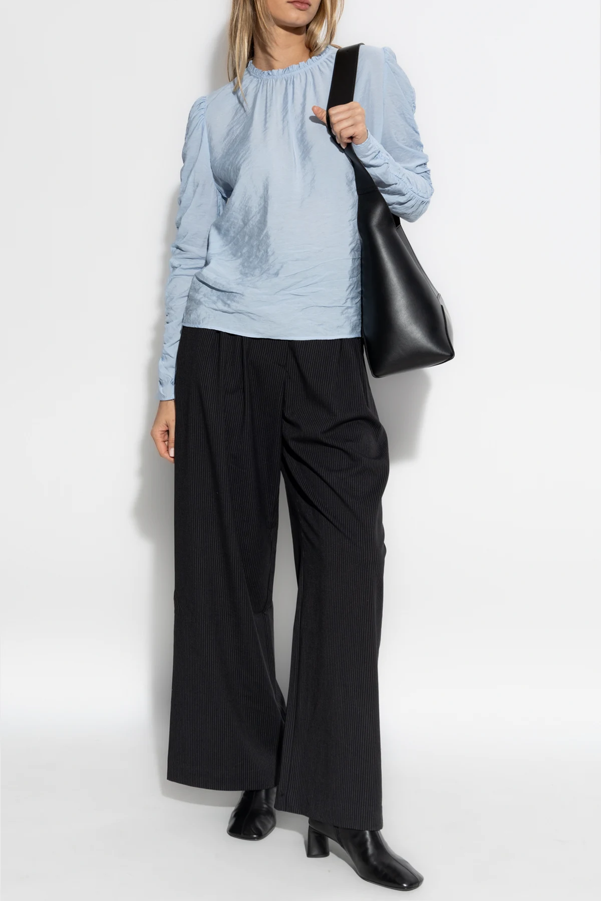 Hergestellt aus hochwertigen Materialien wie recyceltem Polyester, Viskose und Elasthan, bieten sie nicht nur Komfort, sondern auch Langlebigkeit. Der lockere Schnitt mit weiten Beinen und die hohe Taille mit Falten vorne unterstreichen ihren formellen Charakter und machen sie ideal für unzählige Anlässe.