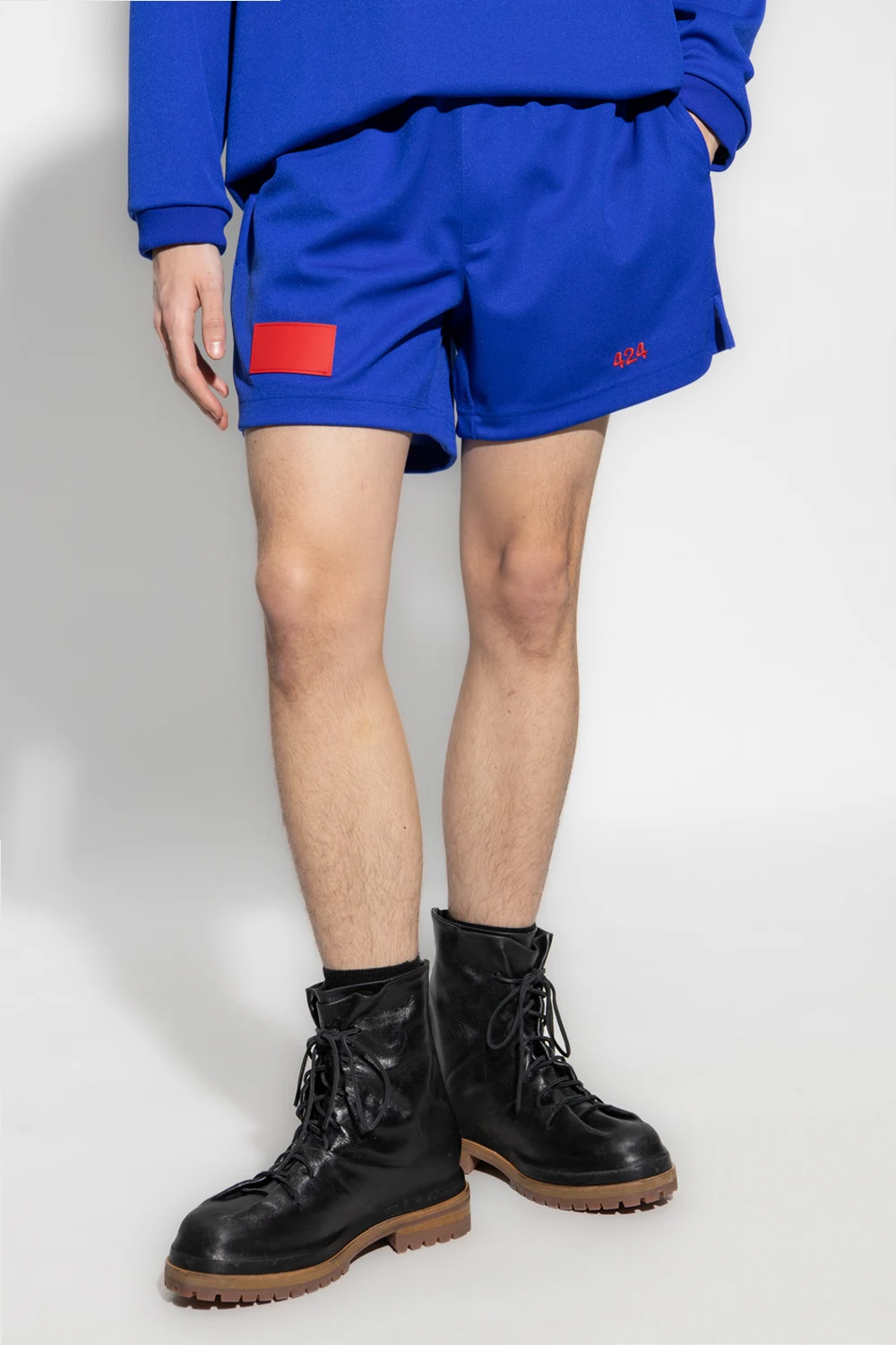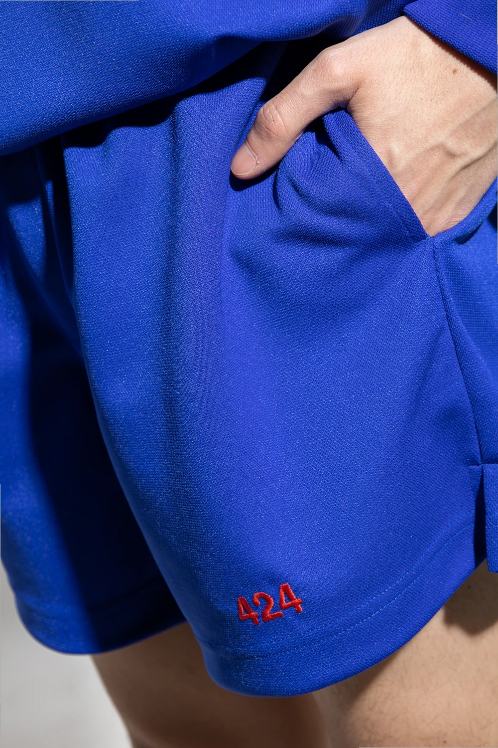 Blue short from 424. Embroidered with the brand's logo, this pair features a drawstring waistband and two slip pockets.