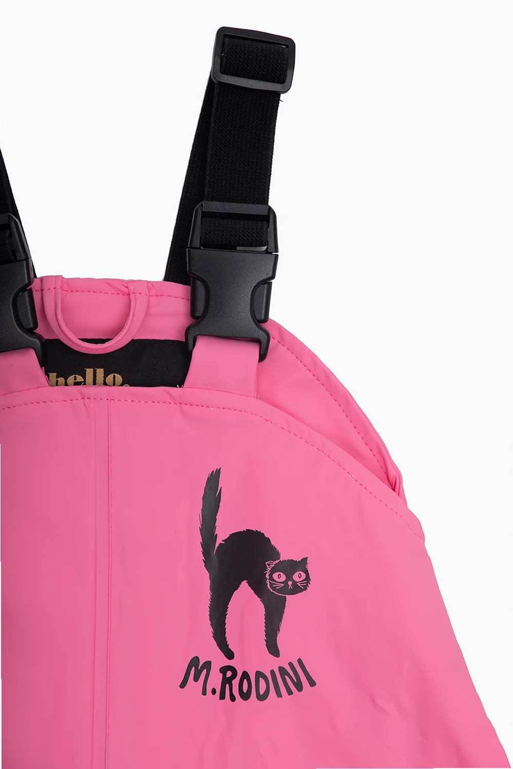 Pink jumpsuit from Mini Rodini. Crafted from recycled material with water-resistant properties, this style fastens with snaps and features a logo print and elasticized cuffs.