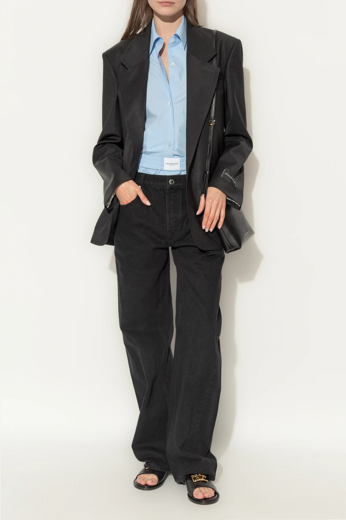 Entdecken Sie das Quintessenz des urbanen Chic mit dem neuesten Angebot des legendären Designers Alexander Wang – Jeans mit weitem Bein . Diese außergewöhnlich sinnlichen und unglaublich bequemen Hosen sind die Quintessenz moderner Eleganz, die klassisches Schwarz mit innovativem Design kombiniert. Aus 100% hochwertigster Baumwolle gefertigt, stehen sie als Symbol für Beständigkeit und Luxus.