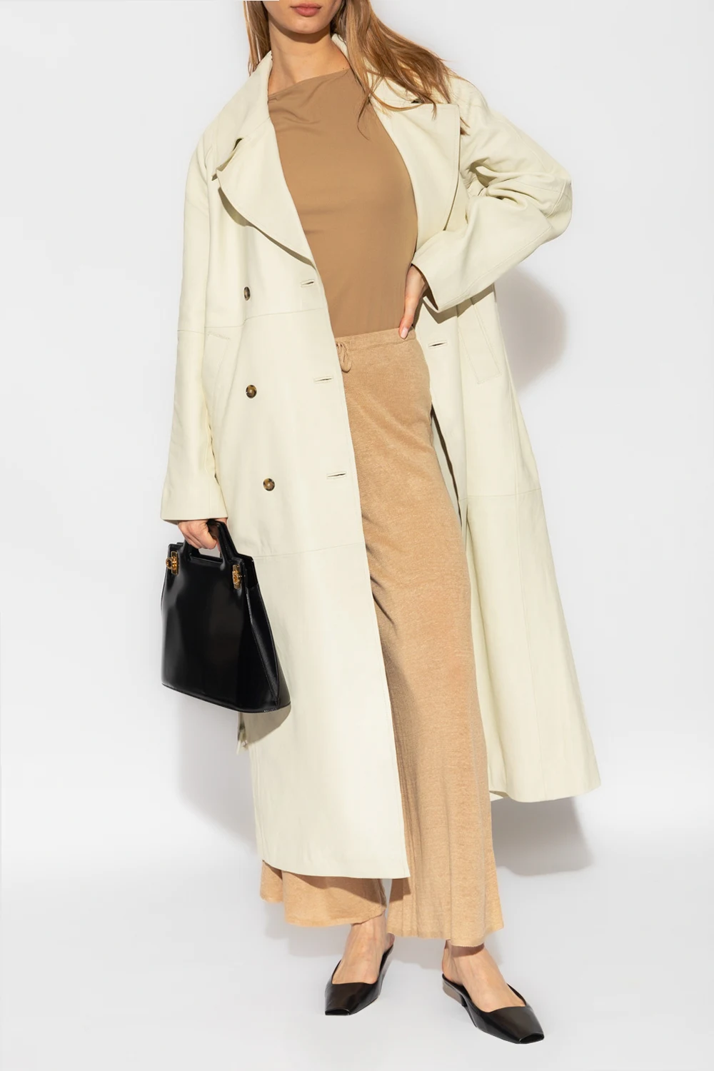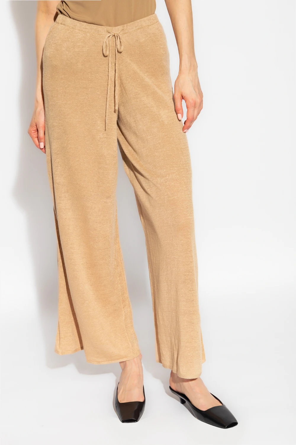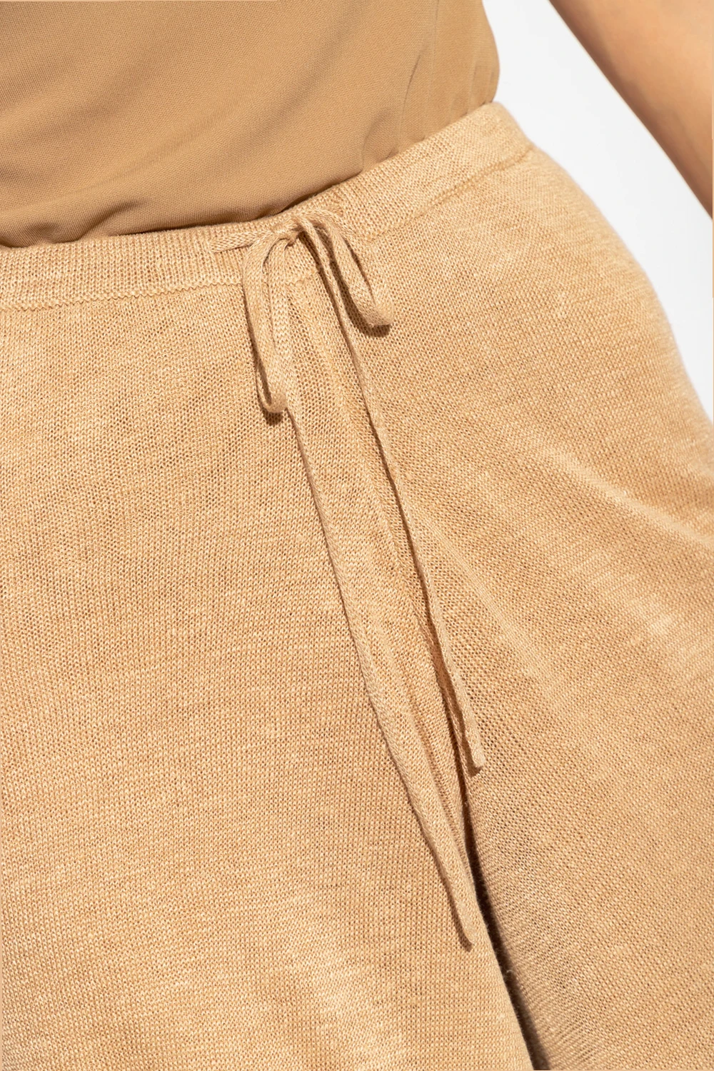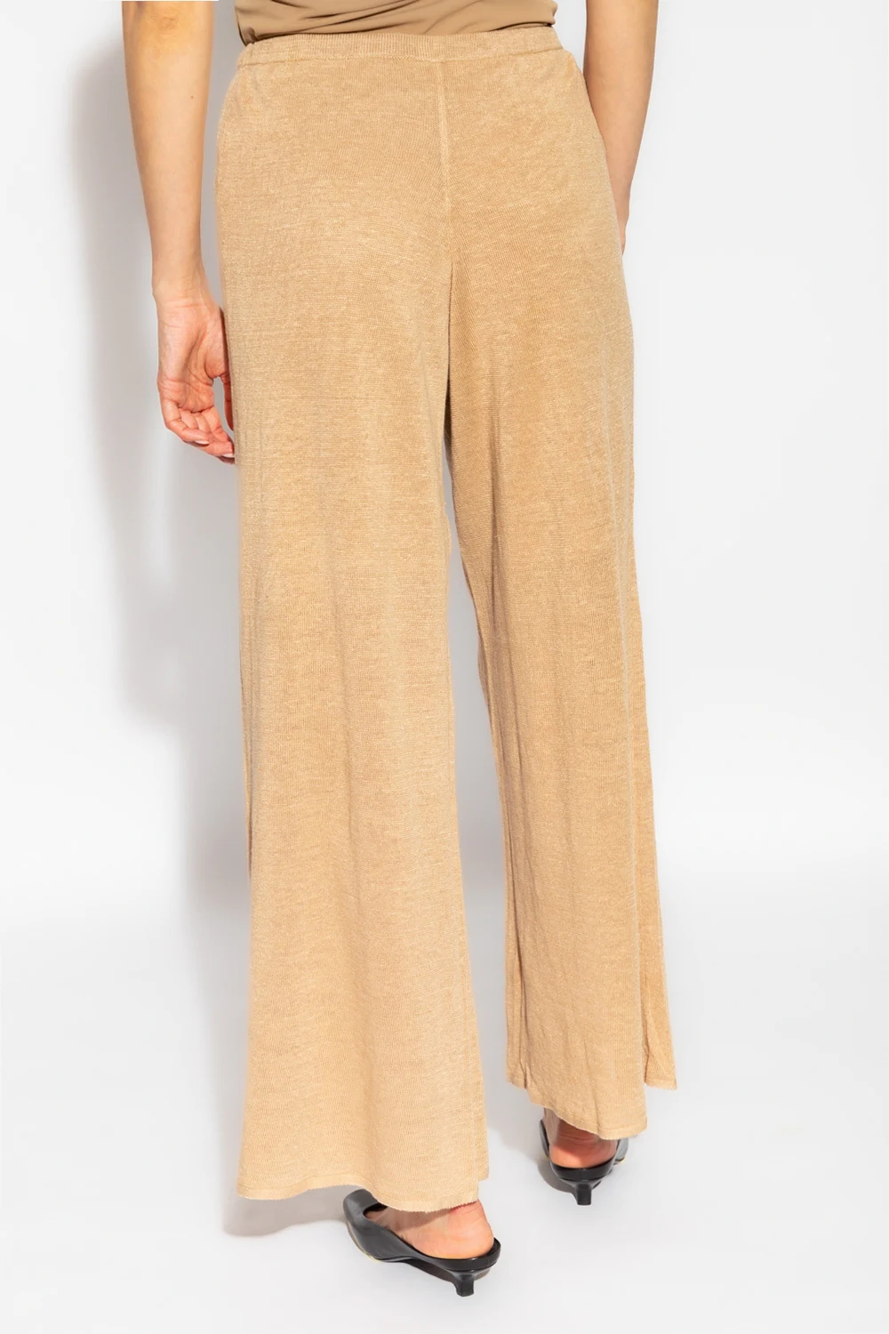 Beige ‘Tamile’ trousers from By Malene Birger. Made of linen, this flared pair has a drawstring waist.